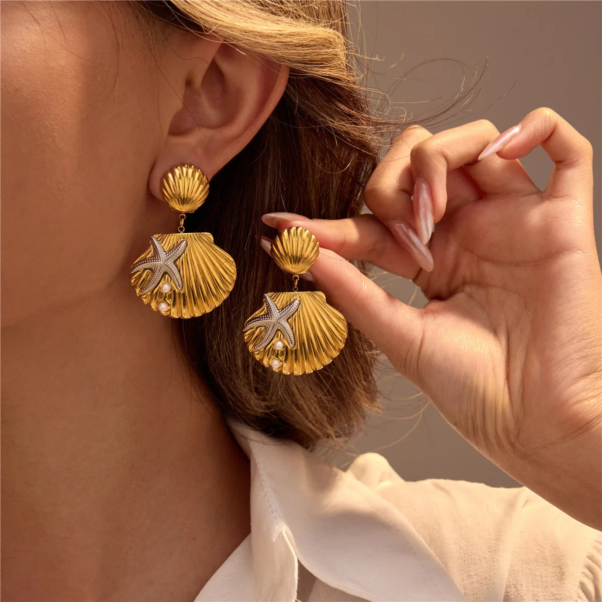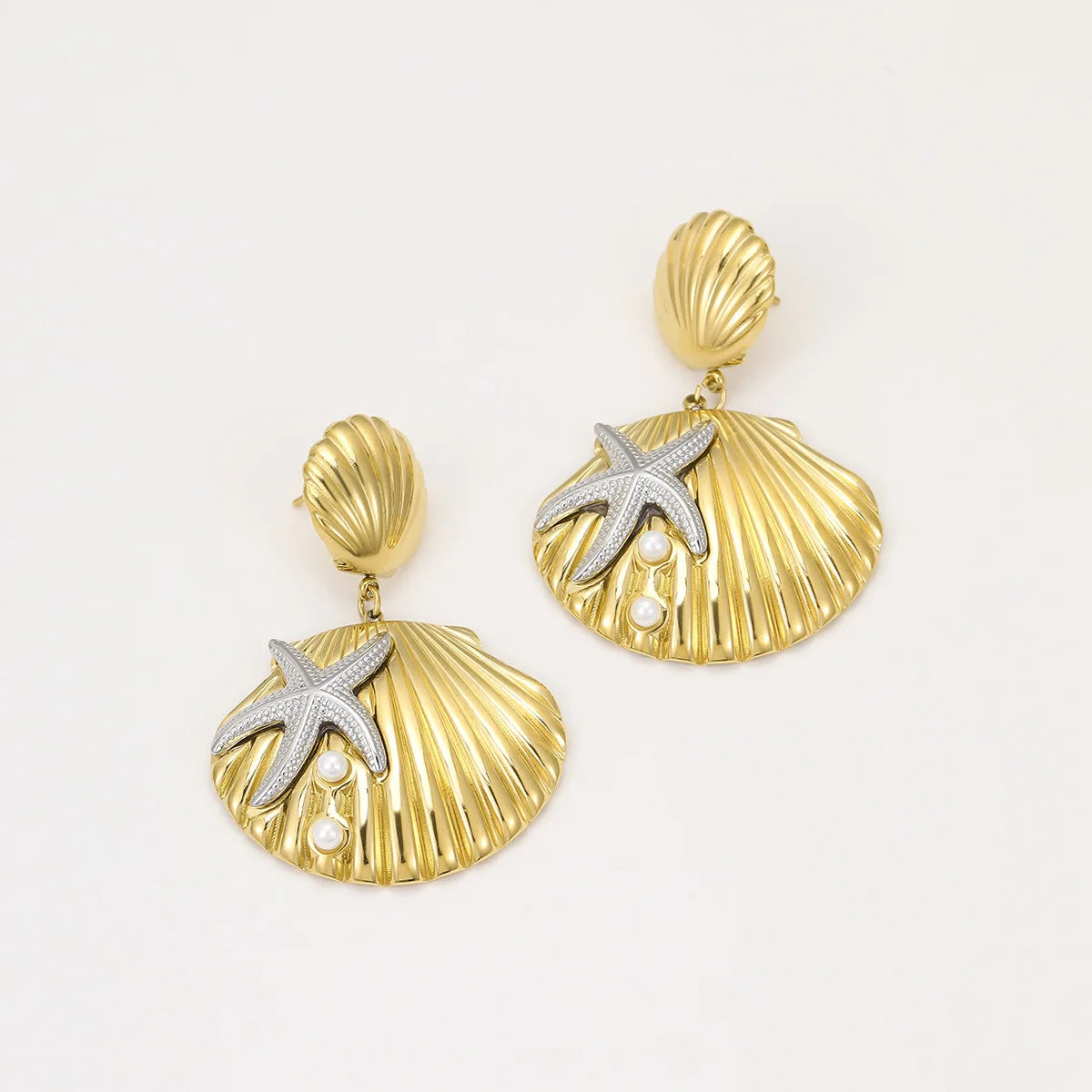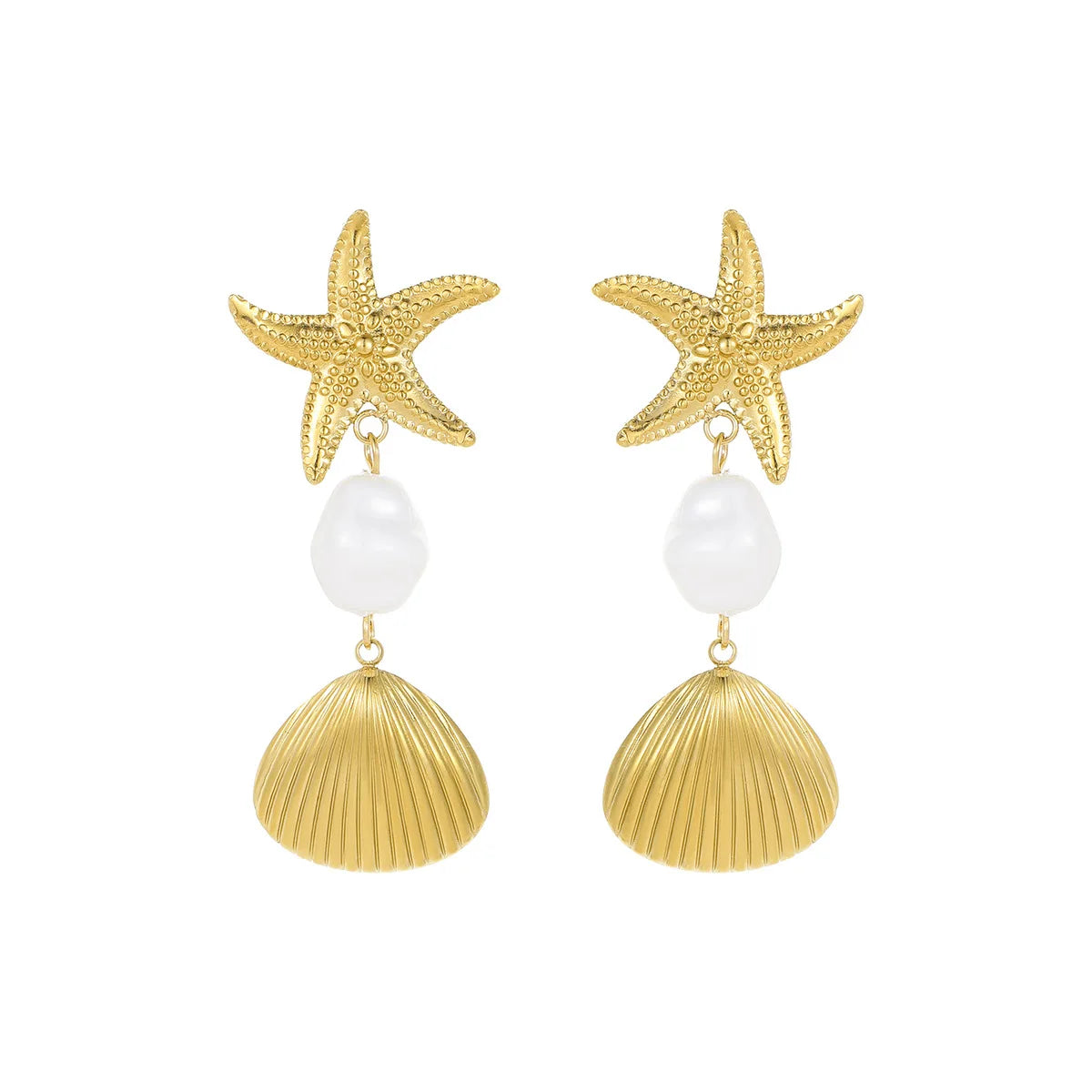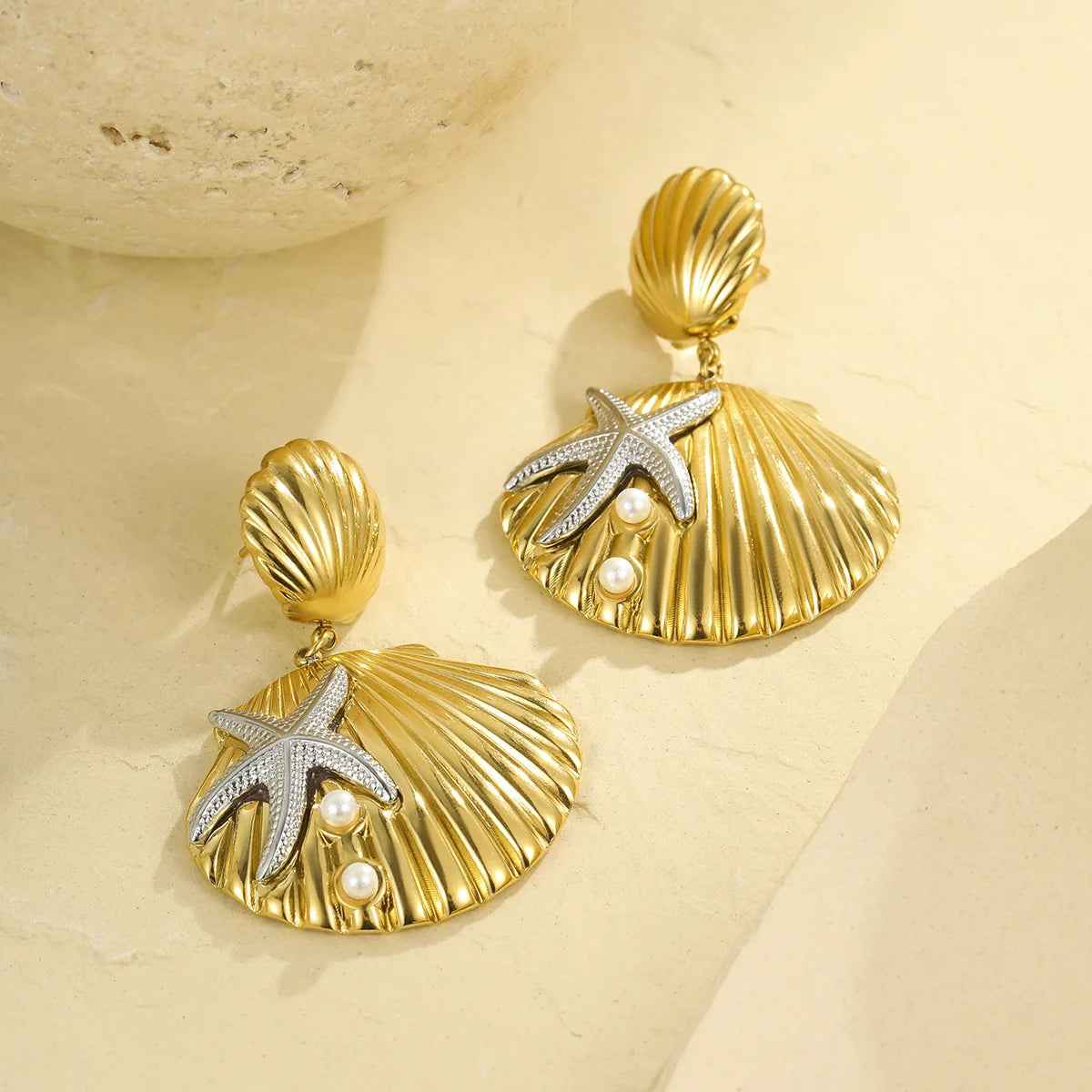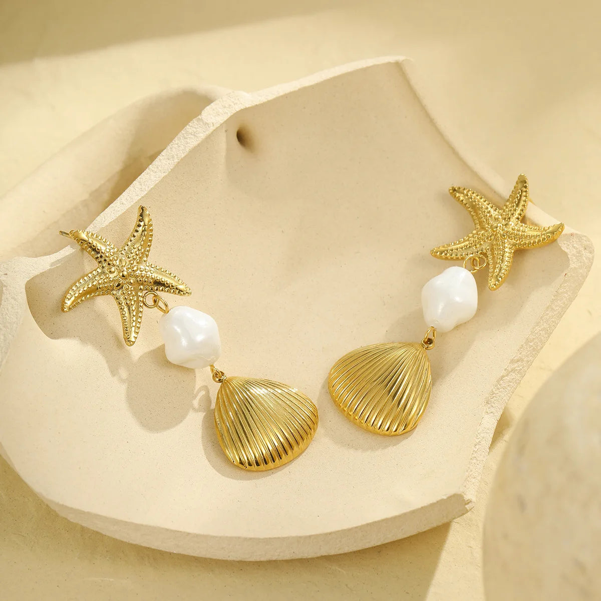 Wholesale Fashion Earrings 18k Gold Plated Stainless Steel Shell Starfish Pearl Drop Earrings Women's Ocean Jewelry
