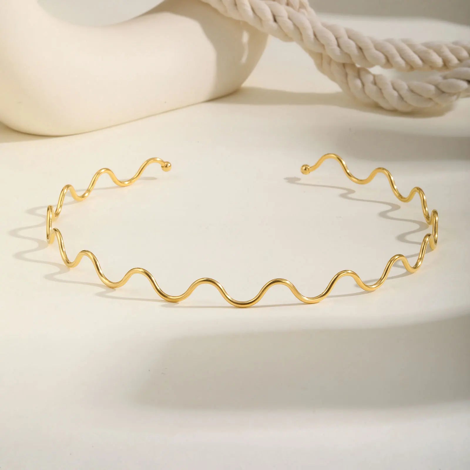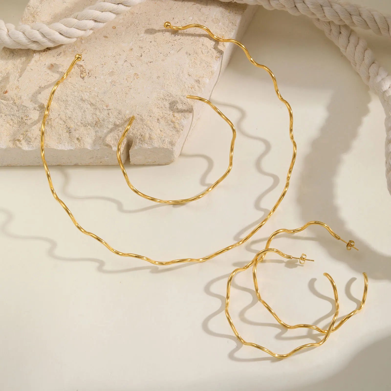 Wholesale Fashion Minimalist Stainless Steel 18k Gold Plated Thin Wavy Necklace Earring Bracelet Jewelry Set for Women