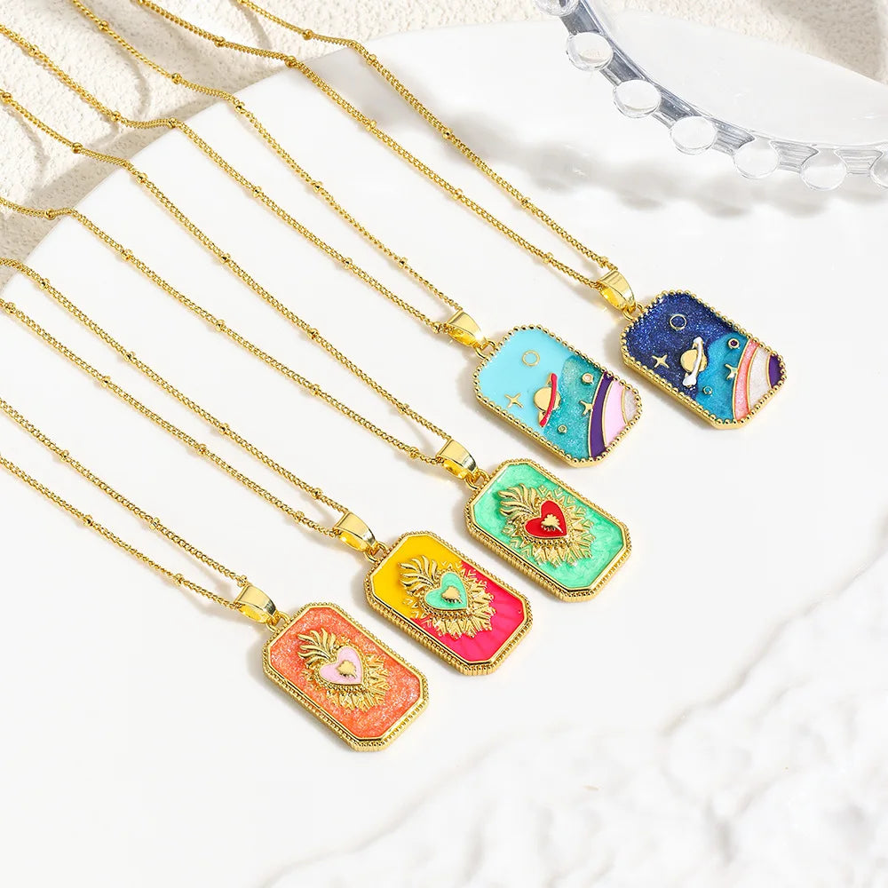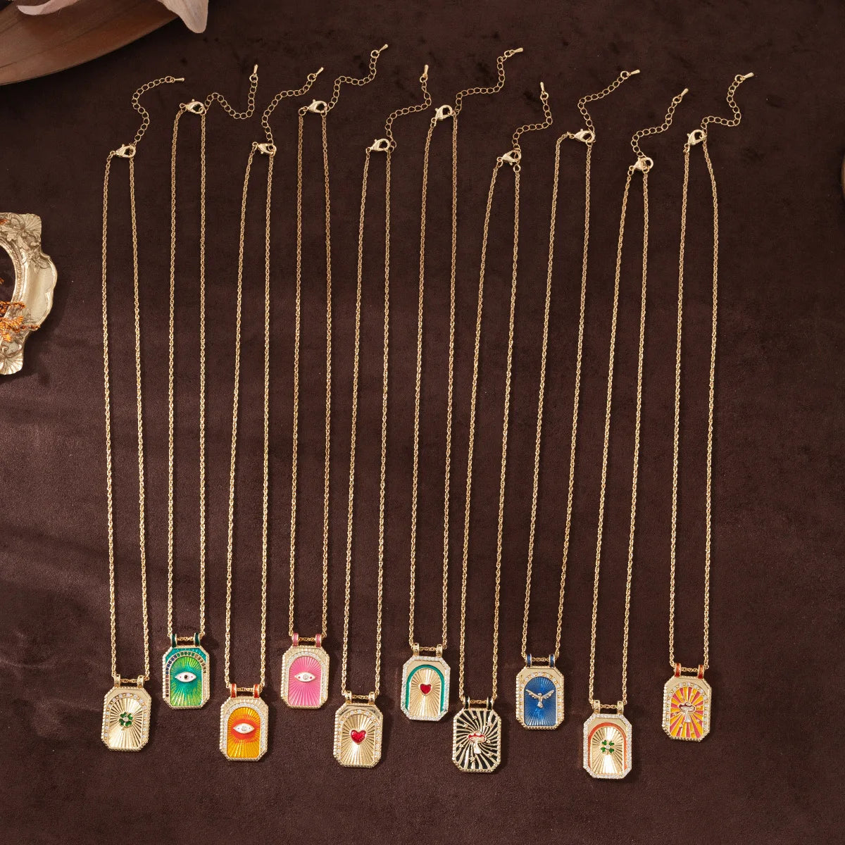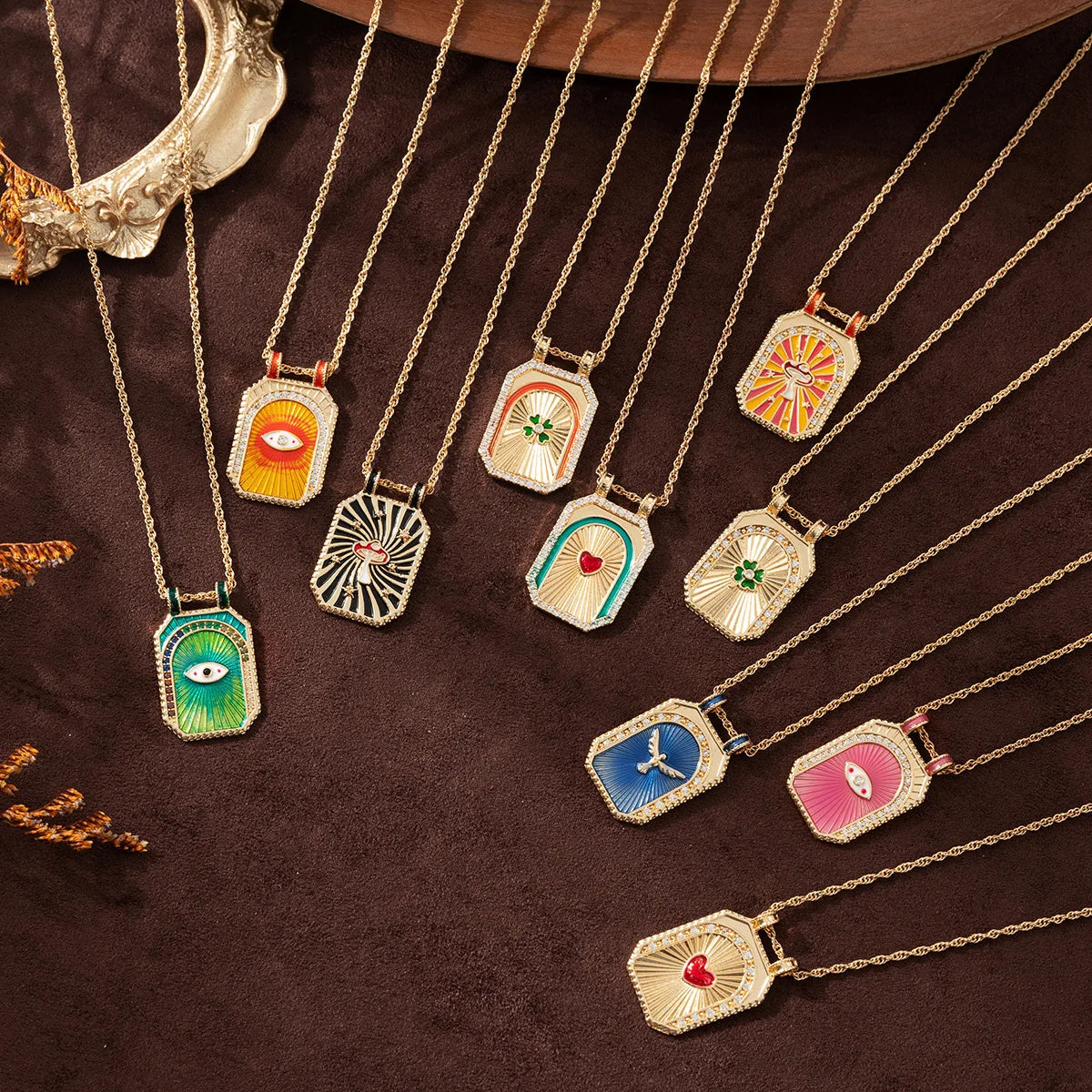 Wholesale Gold Charms Cosmic Heart Pendant Necklace Fashion Geometry Enamel Tarot Cards Necklace for Women