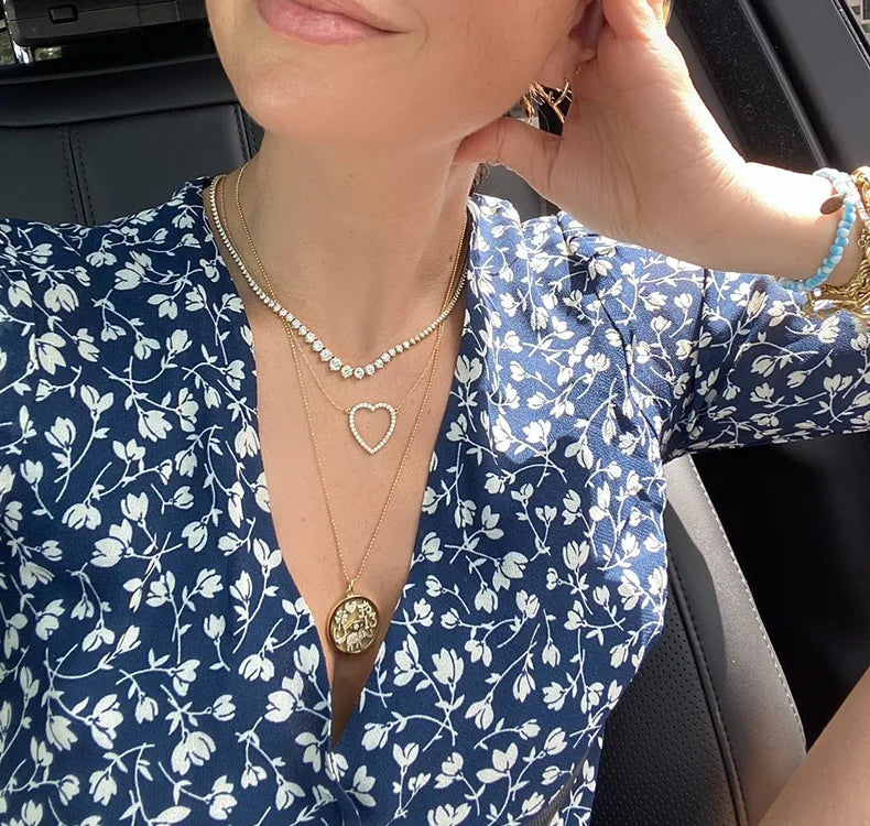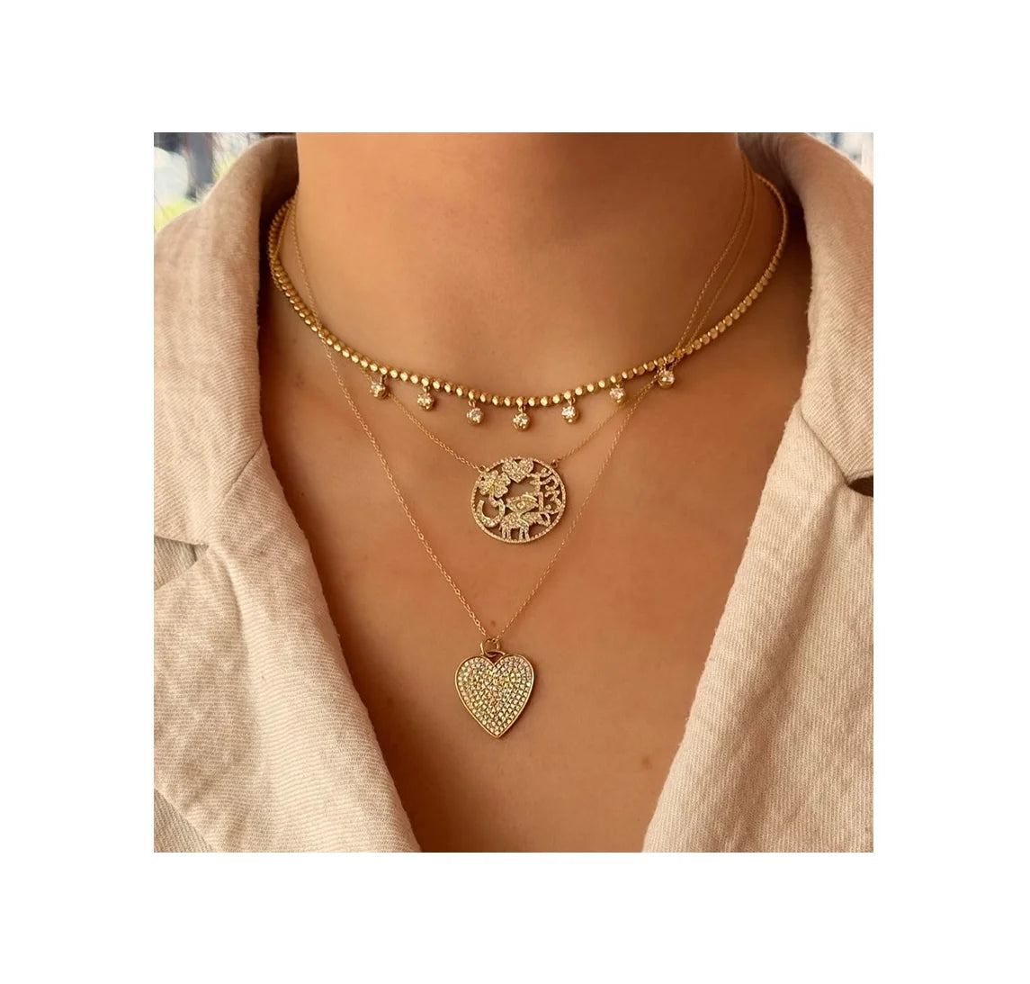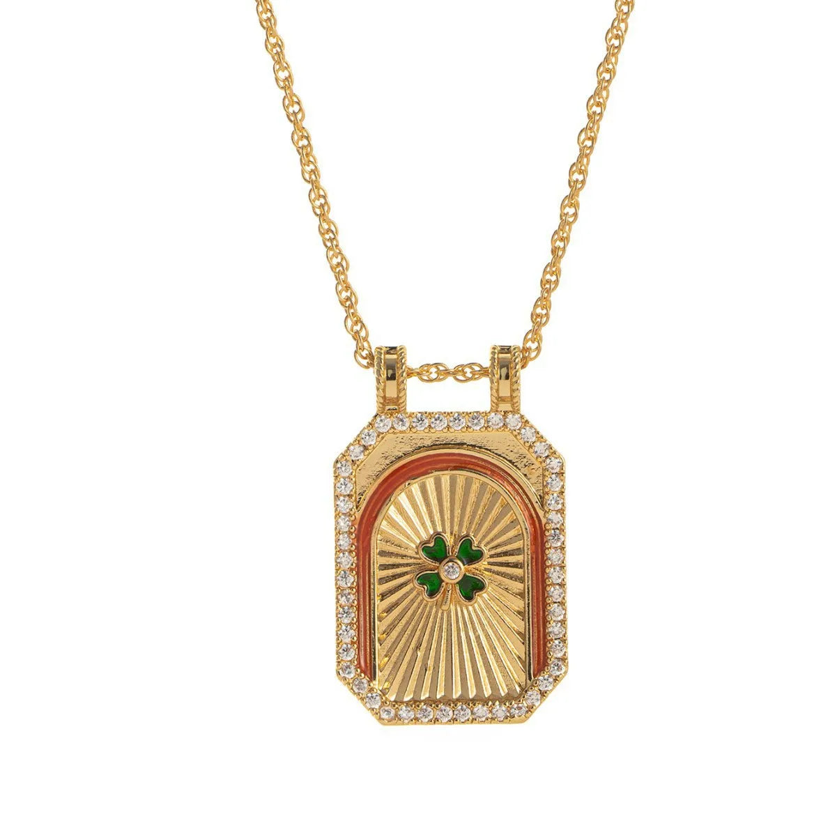 Wholesale Gold Charms Clover Heart Necklace Fashion Geometry Tarot Cards Necklace for Women