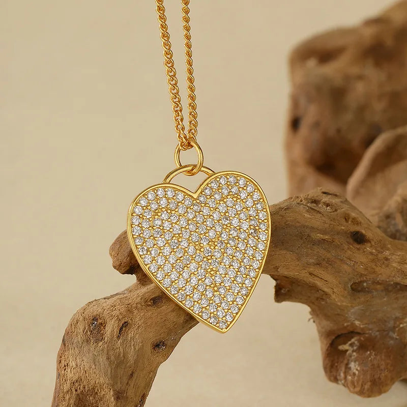 Wholesale Fine Jewelry 925 Sterling Silver 18K Gold Plated Heart Pendant Necklace With Cubic Zirconia for Women