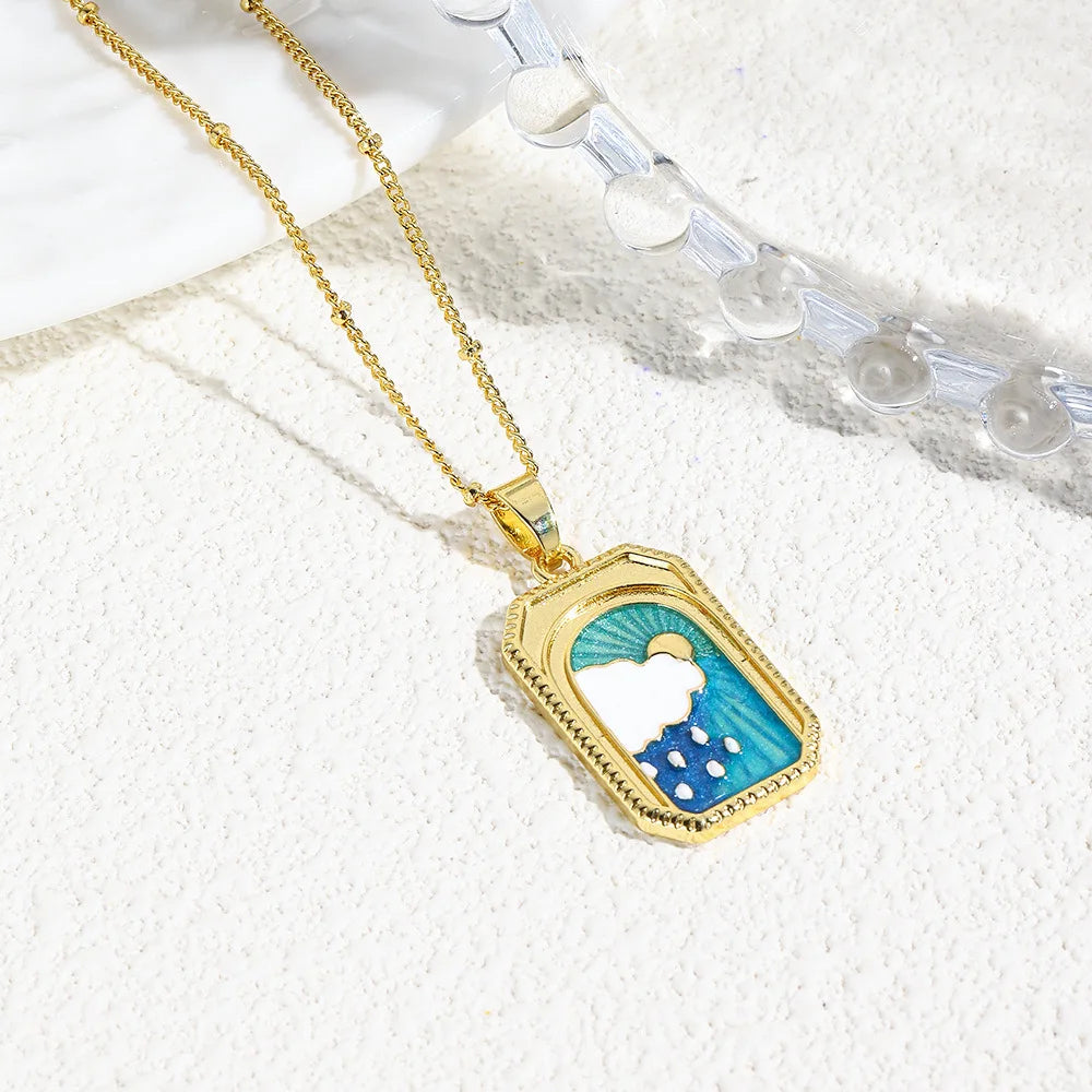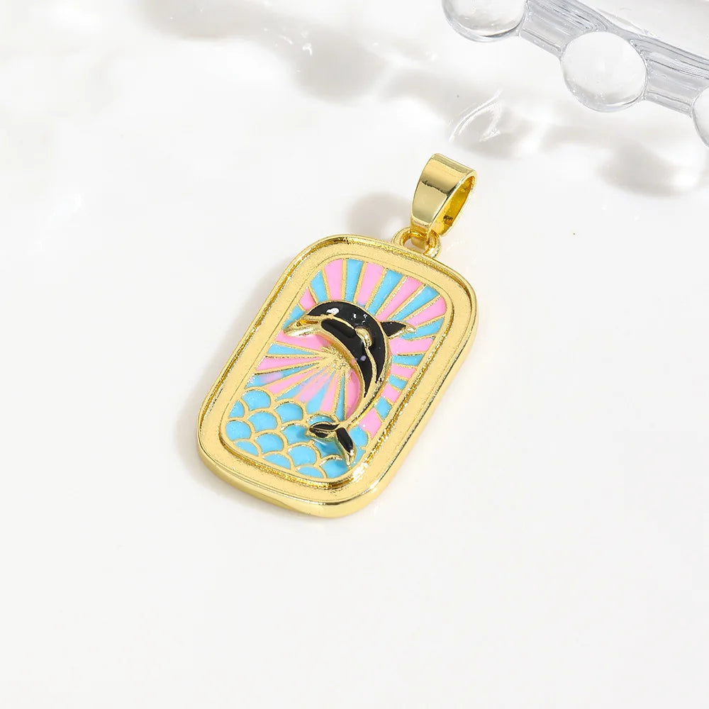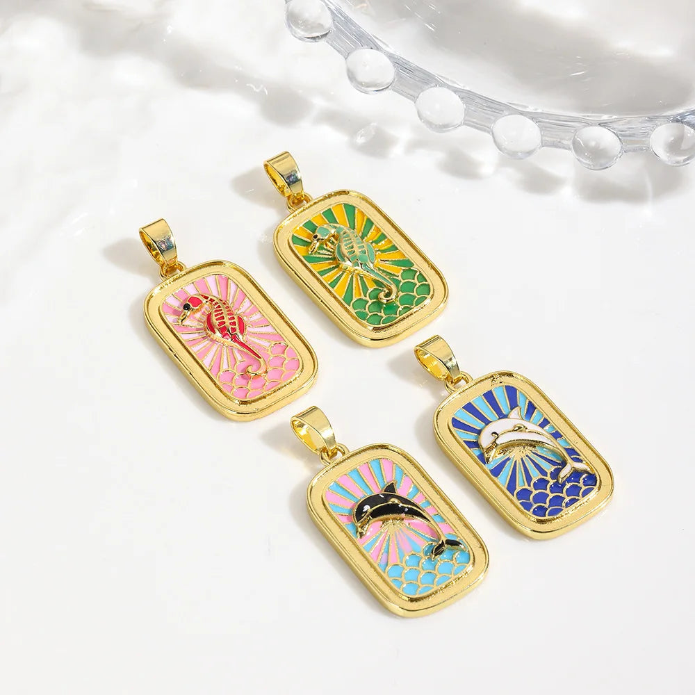 Wholesale Gold Charms Sea Animals Pendant Necklace Fashion Geometry Enamel Tarot Cards Necklace for Women