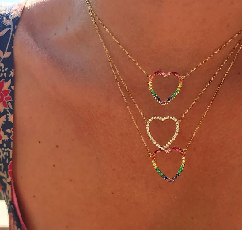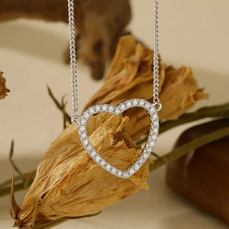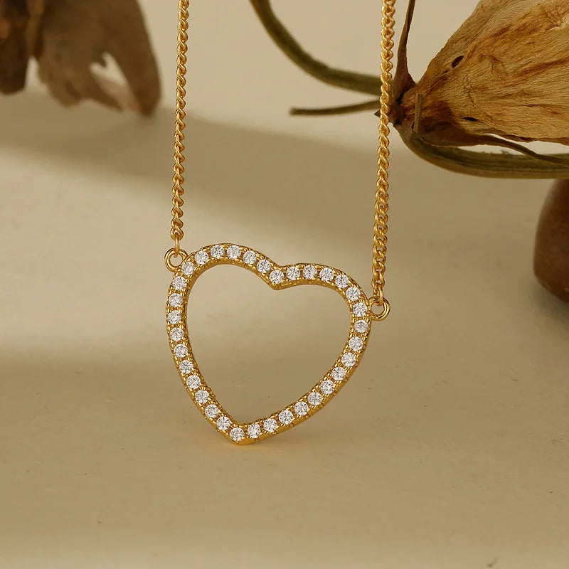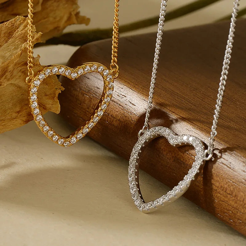 Wholesale Fine Jewelry 925 Sterling Silver 18K Gold Plated Hollow Heart Zircon Pendant Necklace Gift for Women