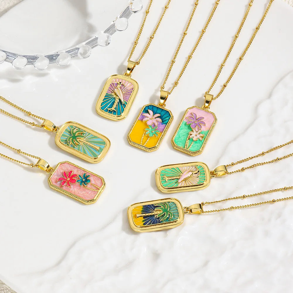 Wholesale Gold Charms Coconut Palm Tree Pendant Necklace Fashion Geometry Enamel Tarot Cards Necklace for Women