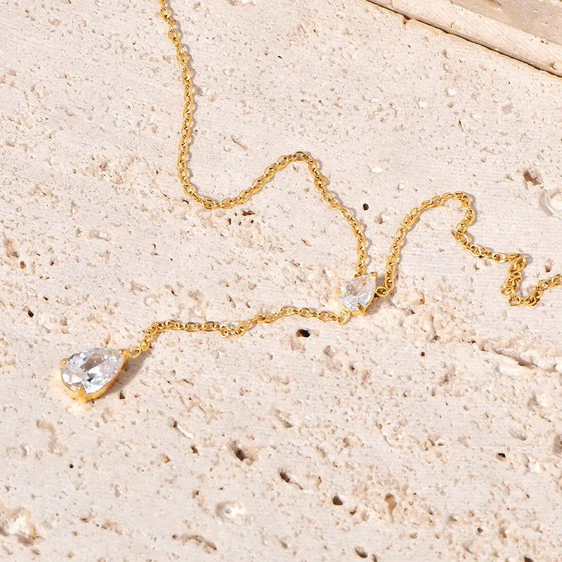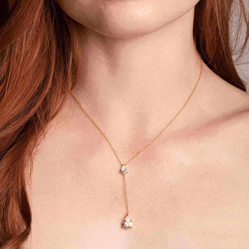 Wholesale Fine Jewelry 925 Silver Gold Plated Zircon Y-Necklace Dainty Custom Tear Drop Necklace for Women