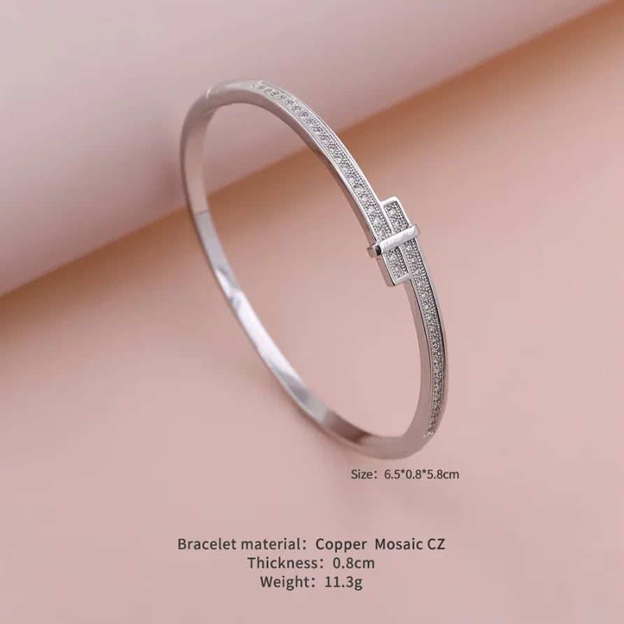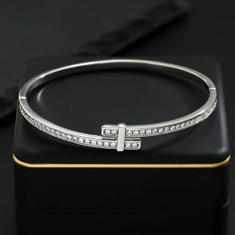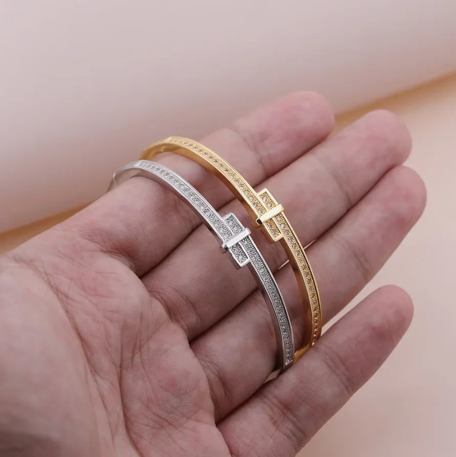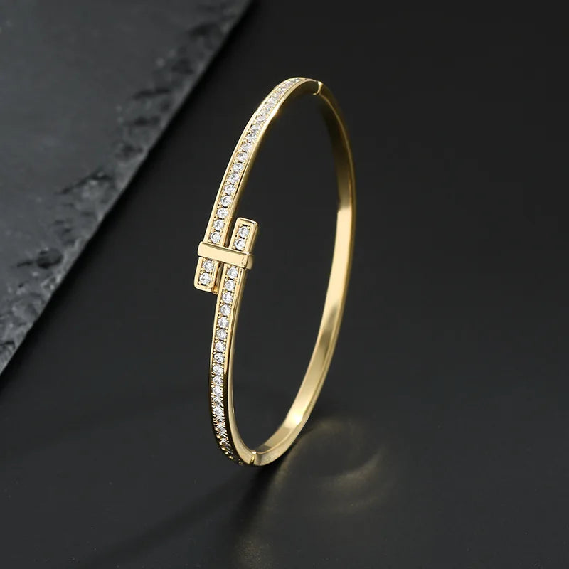 Bestseller Hypoallergenic Stainless Steel Geometric Zircon Bangle Elegant Fashion Jewelry for Women