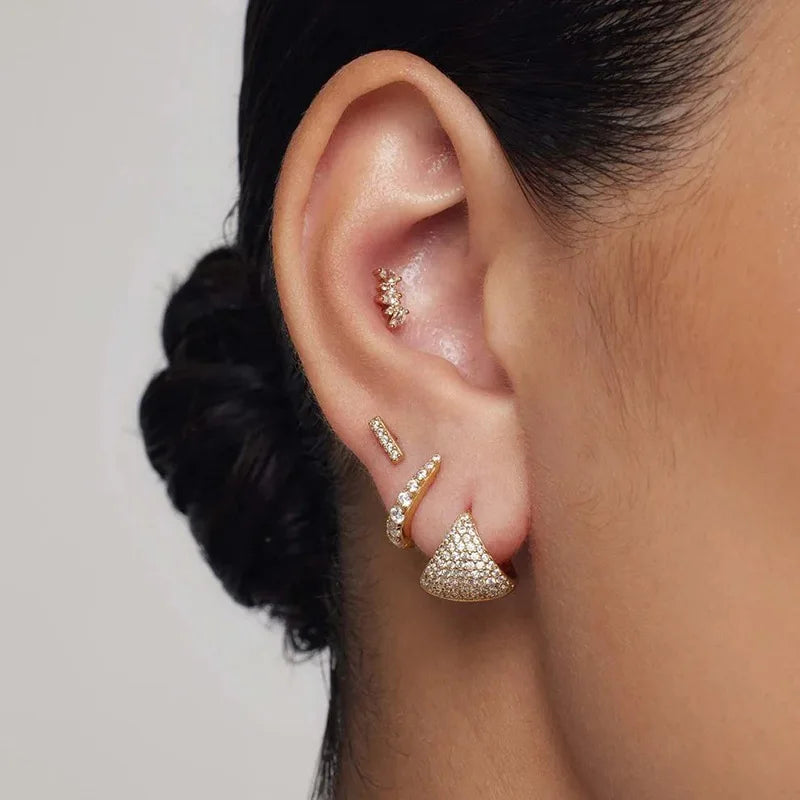 Blossom CS Luxury Gold Plated 925 Silver Wedding EarringsIrregular Colored Zircon Thick Hoop Studs