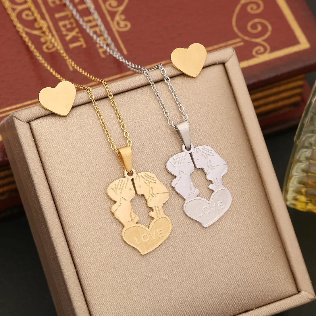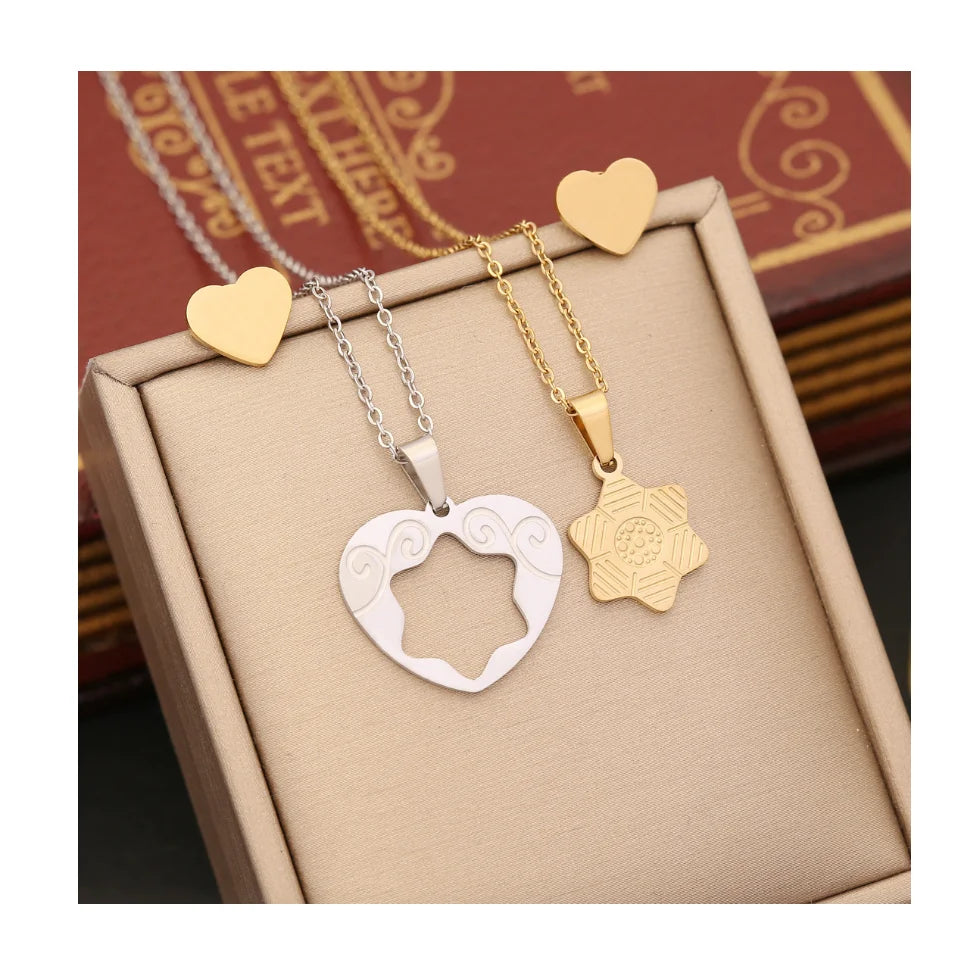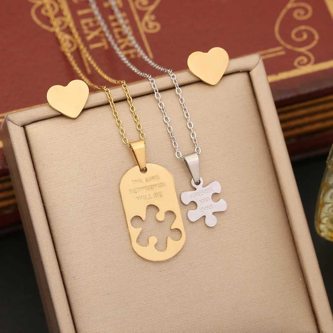 Wholesale Stainless Steel Double Heart Pendant Necklace Fashion Puzzle Pendant Necklace for Couples Girlfriend Gift