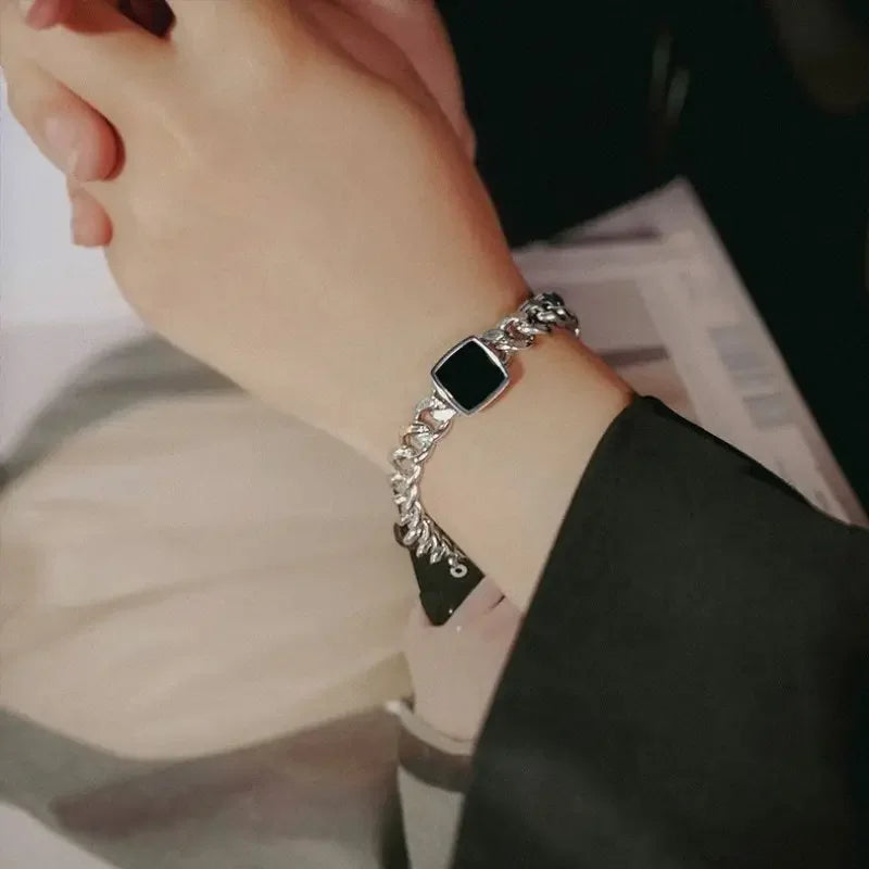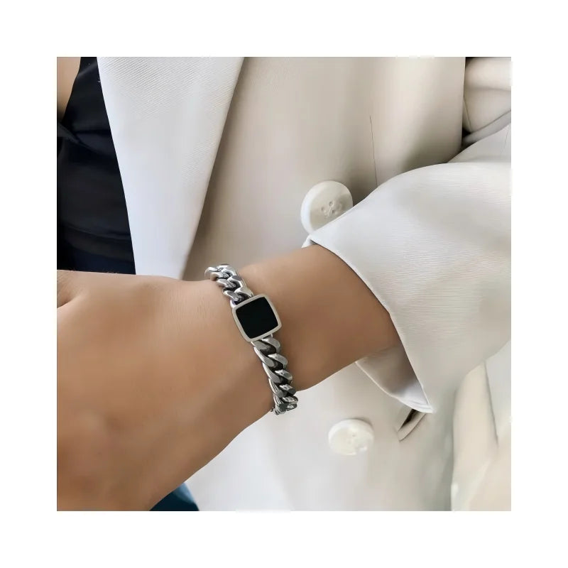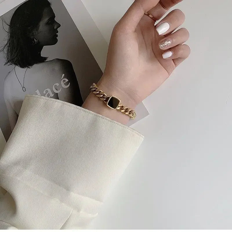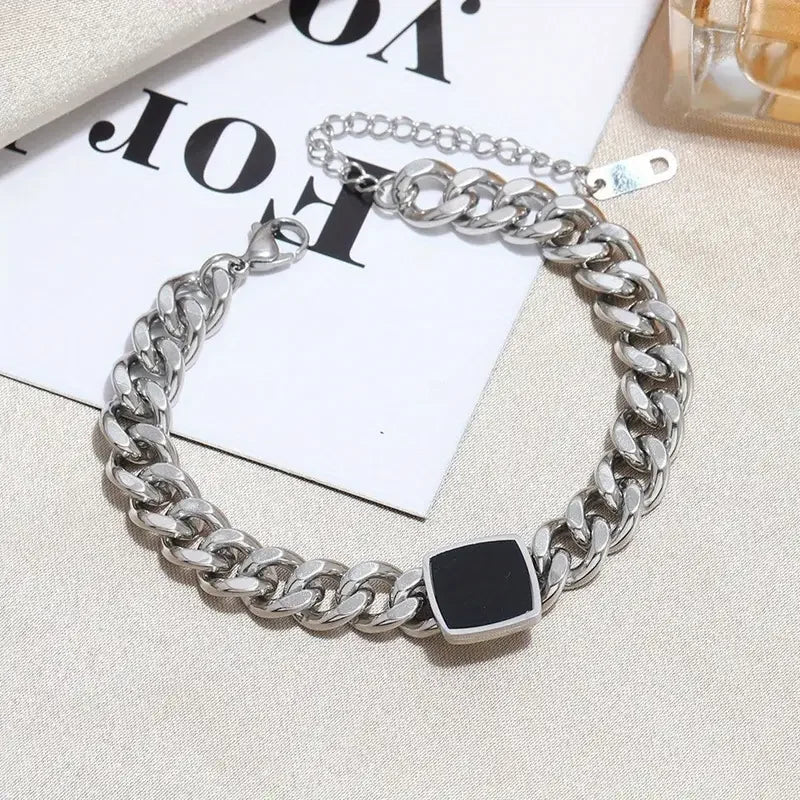 Wholesale Simple Style Geometric Titanium Steel Stoving Varnish Bracelets Women'S Square Cuban Link Bracelet for Valentine