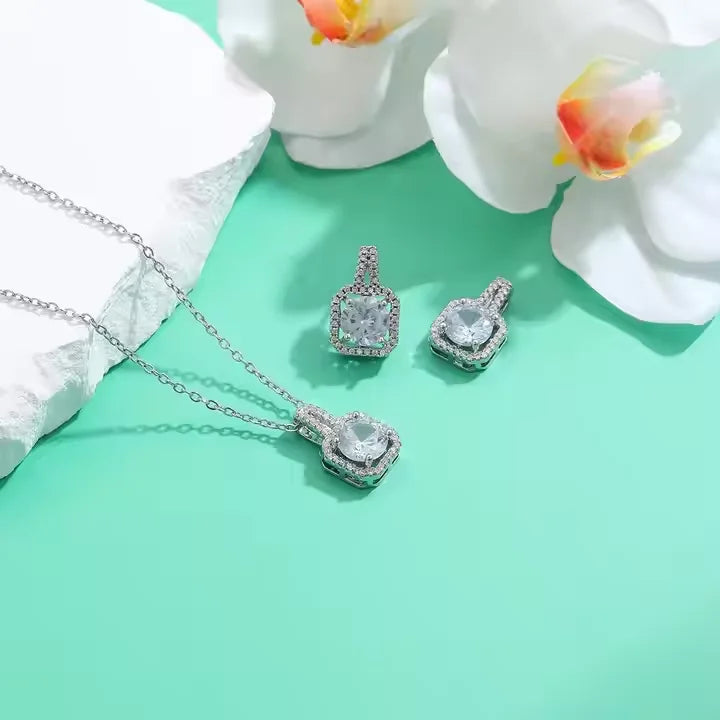 Wholesale Square Diamond Jewelry Sets for Women Classic Fashion Pendant Necklace Earrings Ring Wedding Jewelry Sets for Bride