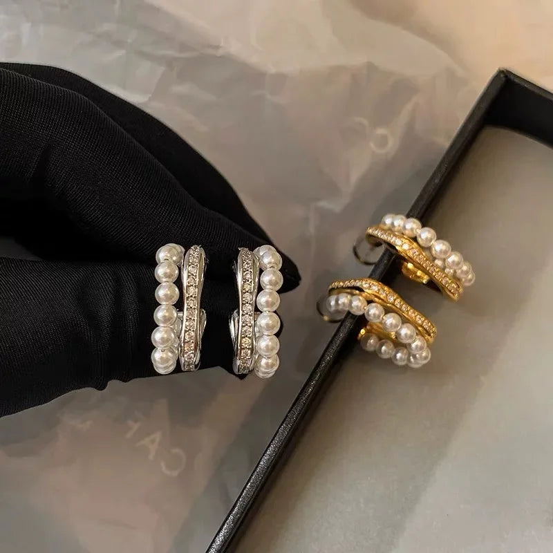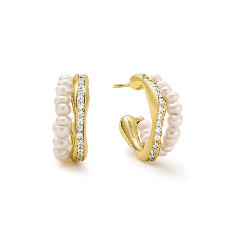 Chic Double Layer Fresh Water Pearl Earrings with Cubic Zirconia Silver 925 Unique Pearl Stud Earrings for Women