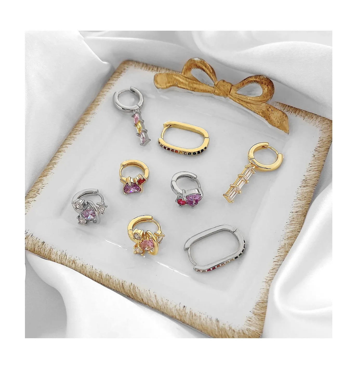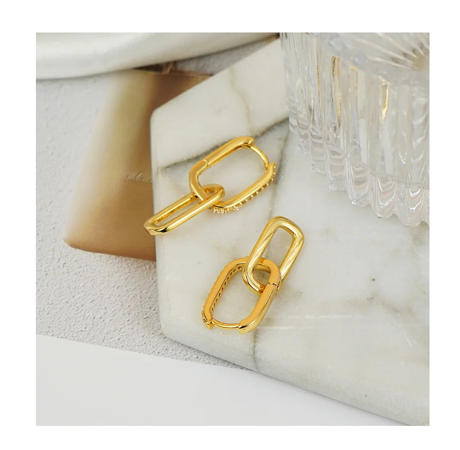 Carefully Selected Geometric Cz Earrings Made of with Gold Plating for Fashionable Daily Wear and Women's Charm Accessory