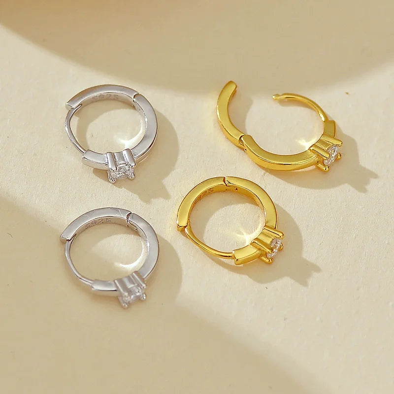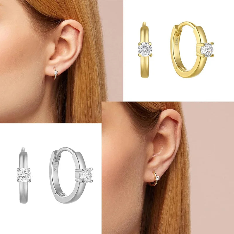 Classic 925 Sterling Silver 18K Gold Plated Zircon Hoop Earrings for Women Shimmering Gold Hoop Earrings with Zircon Jewelry