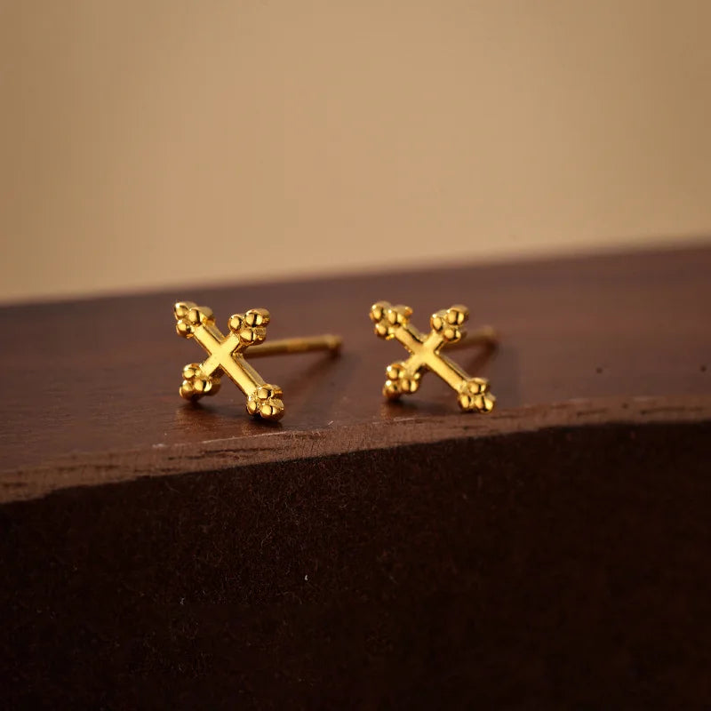 Chic Trendy 18K Gold Plated Cross Shape Earring for Women Personality Style Fine Jewelry Earrings