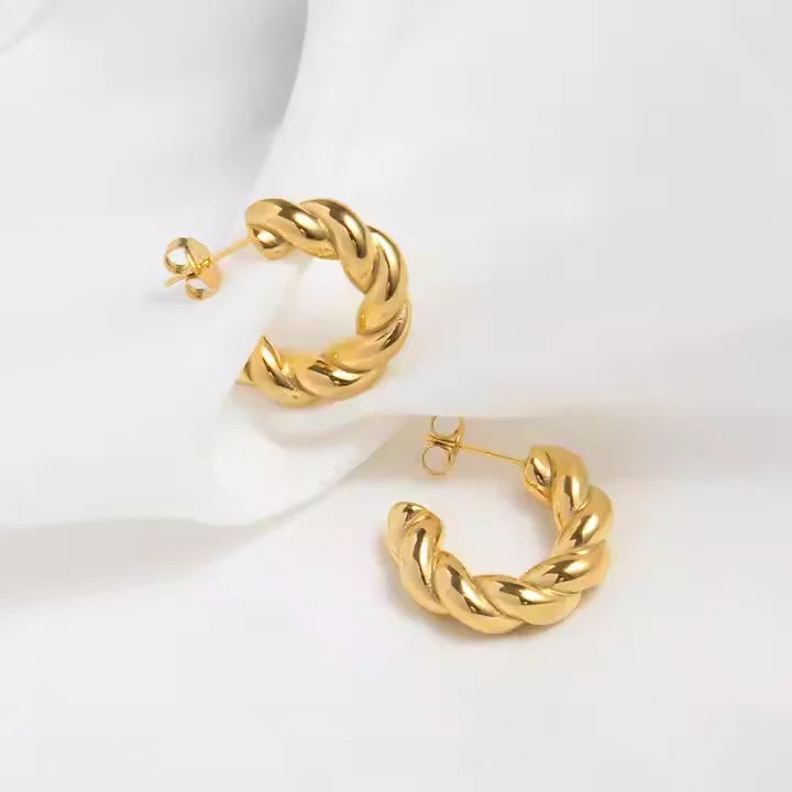 Bold Gold Plated Spiral Drop Statement Earrings Vintage Metal Twisted Long Drop Earrings for Women