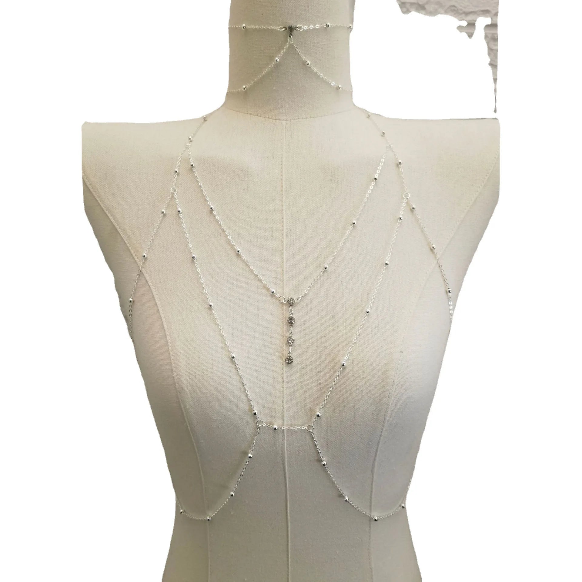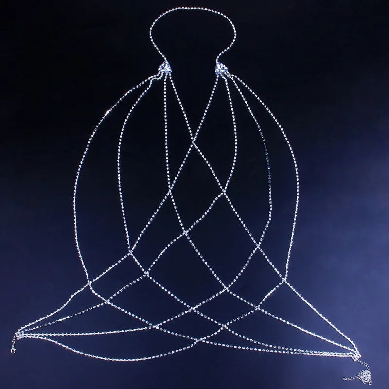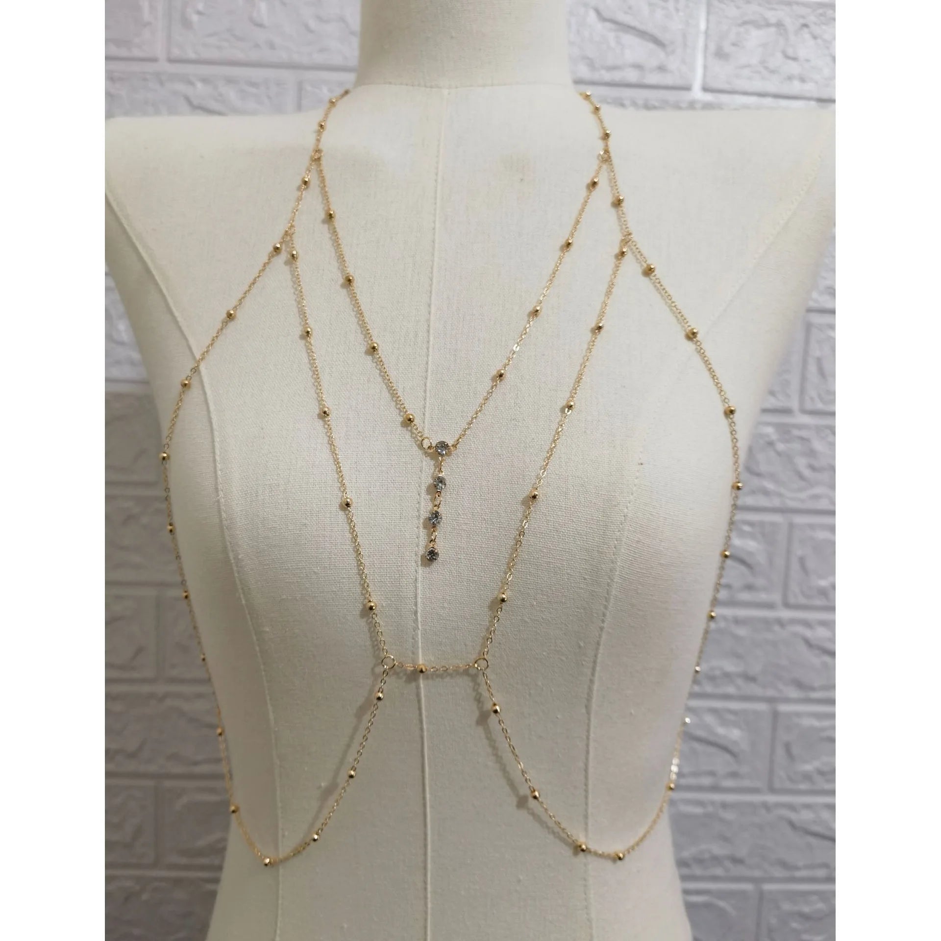 2025 Summer Fashion Body Chain Gold Plated Rhinestone Bikini Bra Chains for Women Beach Party Nightclub
