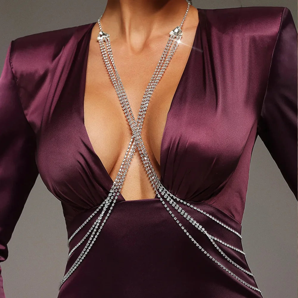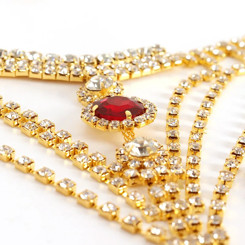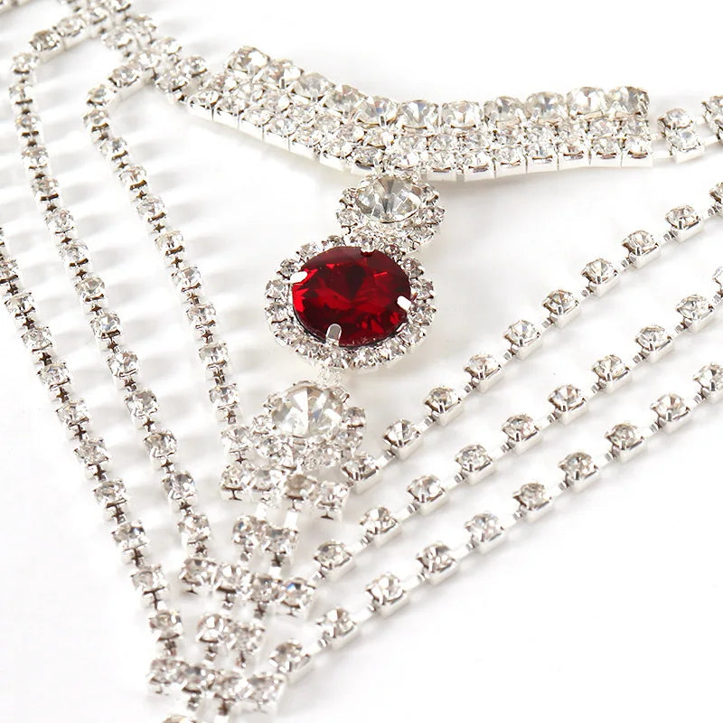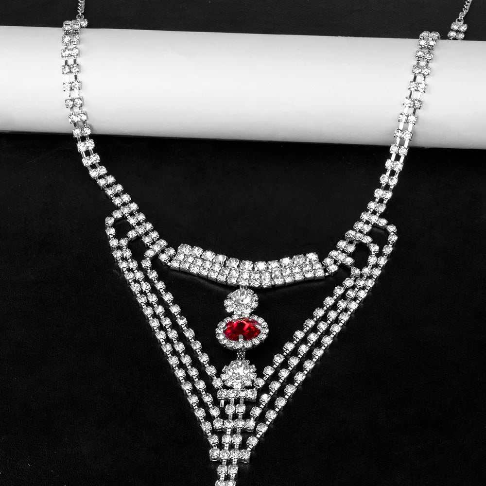 2025 New Red Rhinestone Body Chain Set Sexy Lingerie Jewelry for Women Beach Party Accessories
