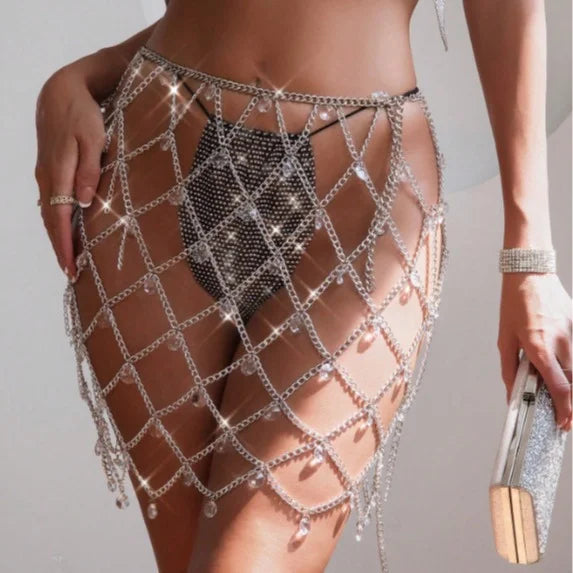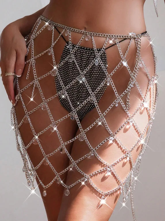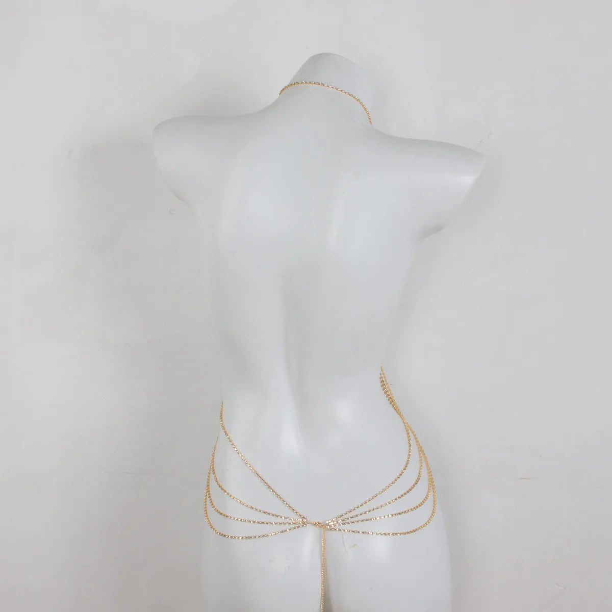 2025 New Multi-Layer Rhinestone Bohemian Waist Body Chain Set for Women Beach Party & Nightclub Sexy Jewelry