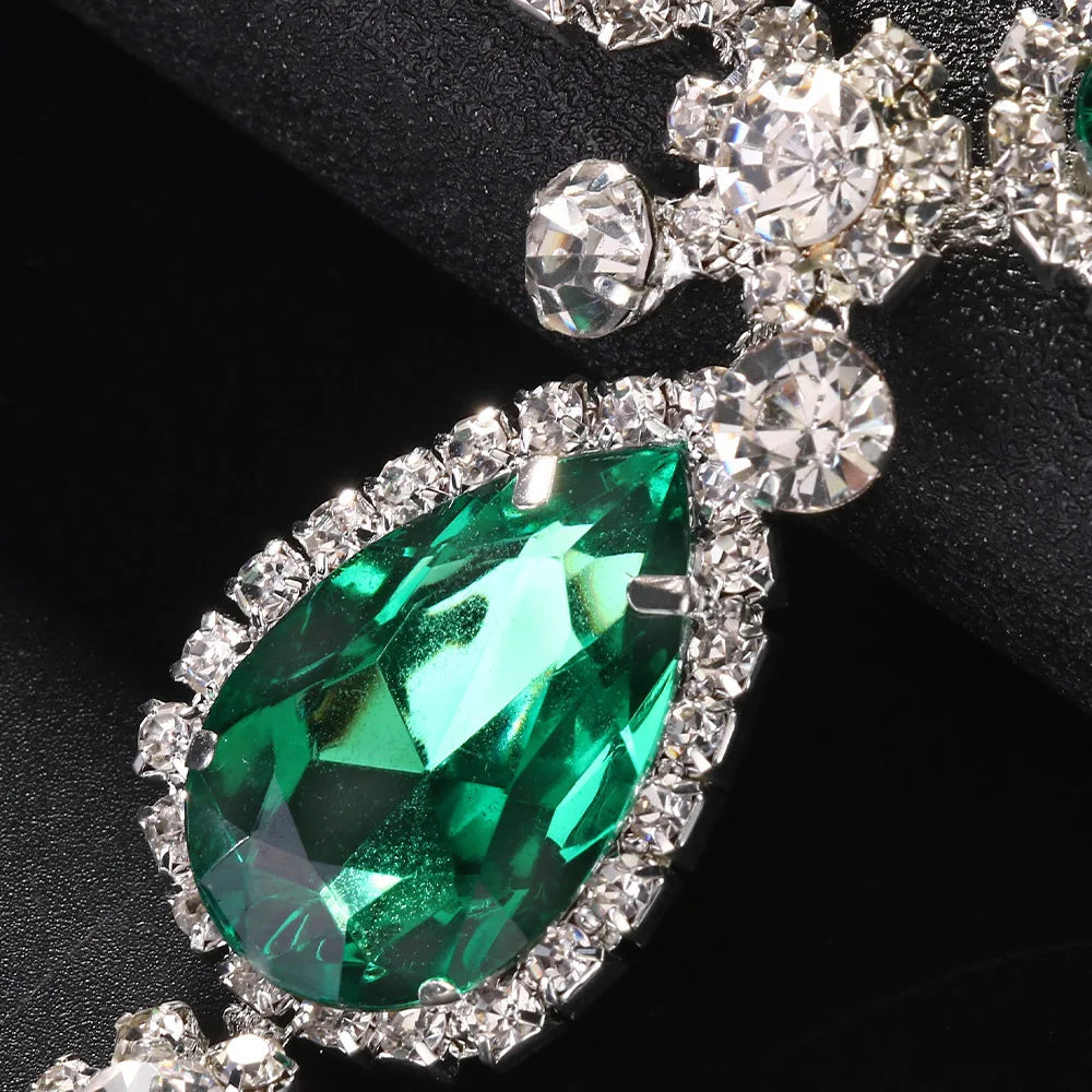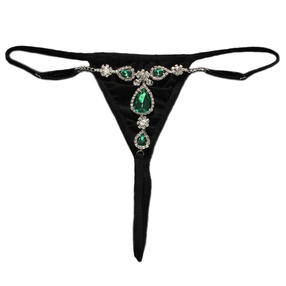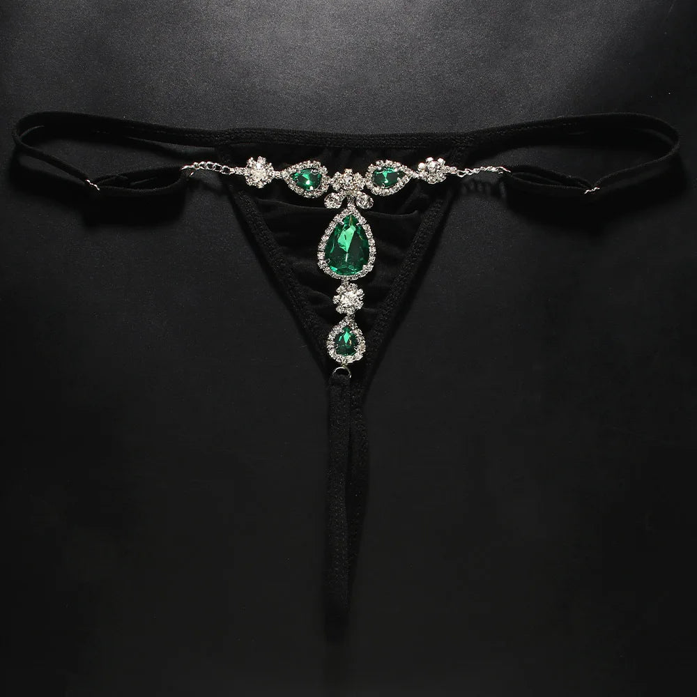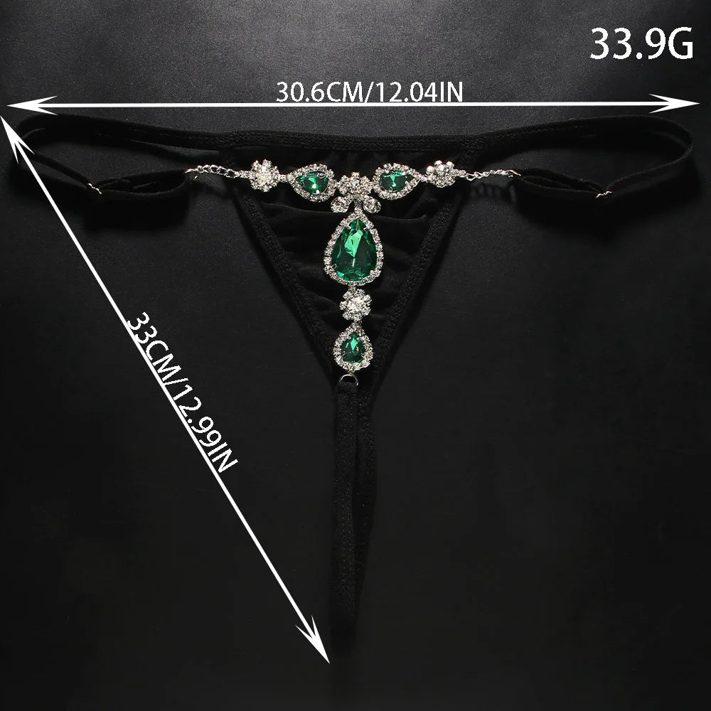 Emerald Rhinestone Floral Bikini Chain Adjustable Underwear Jewelry for Women Summer Body Accessories
