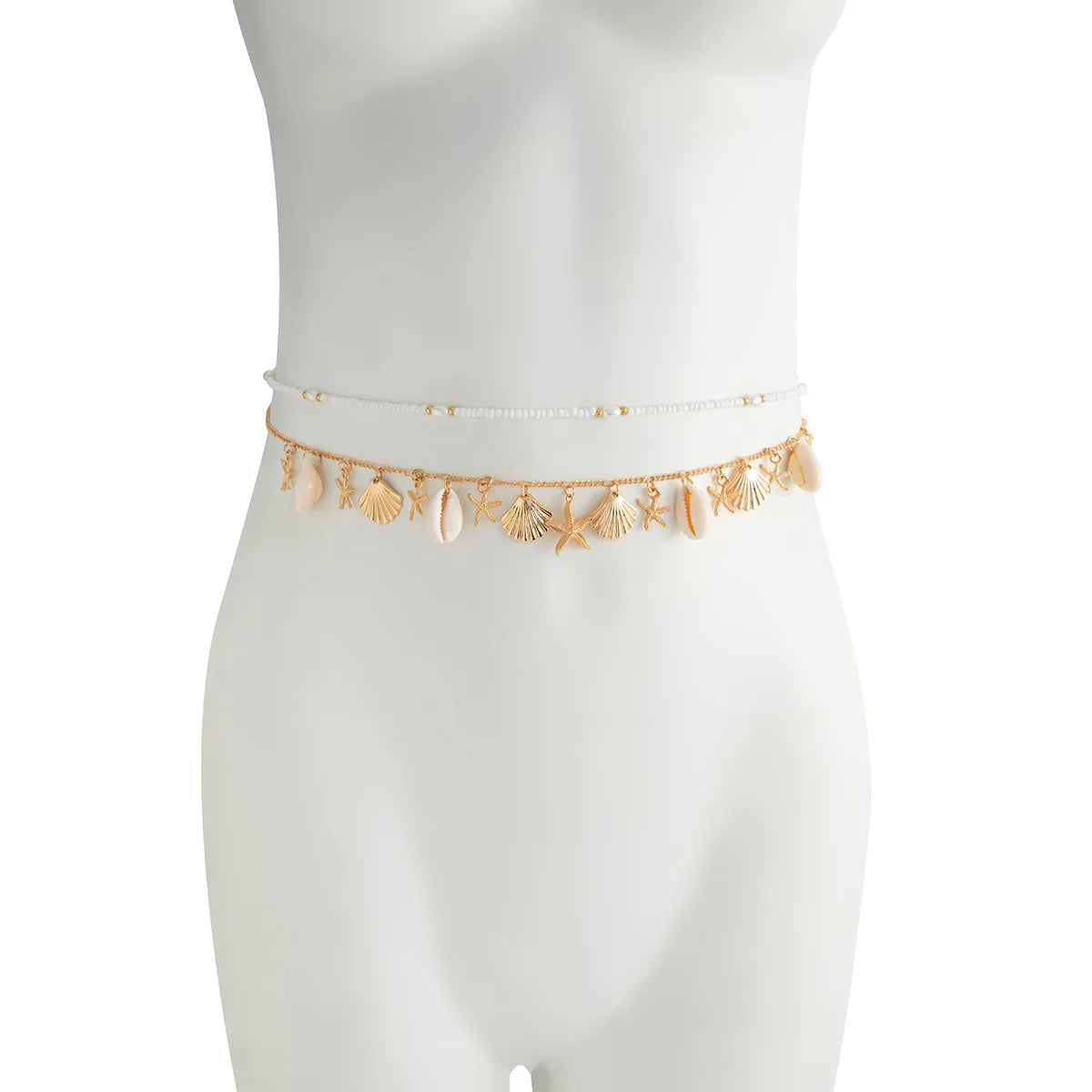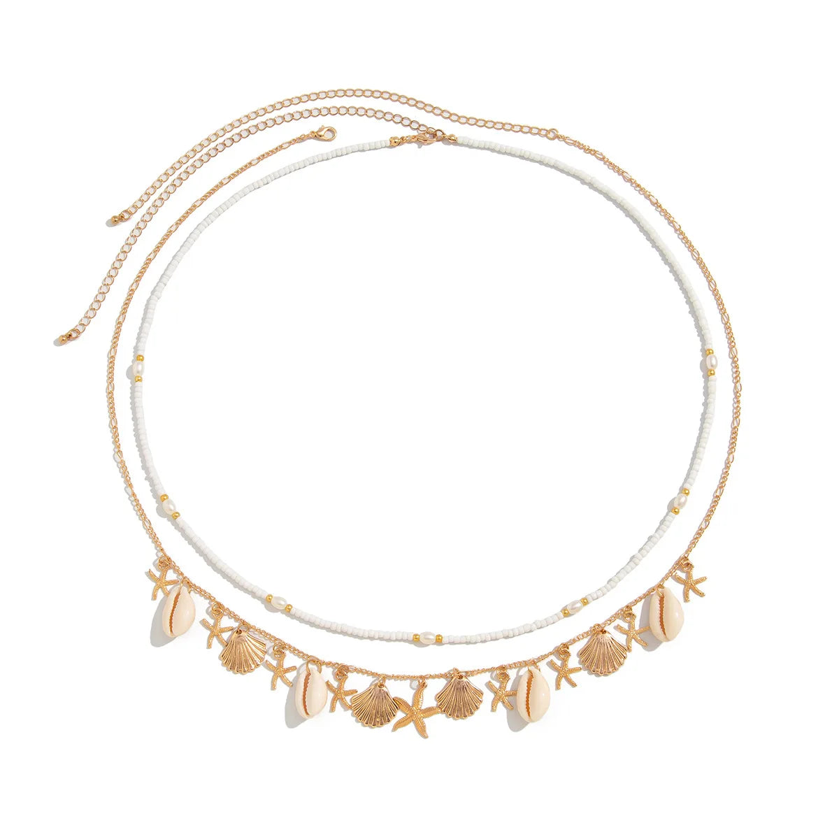 Bohemian Layered Belly Chain Set Natural Shell & Starfish Charm Seed Beaded Waist Jewelry for Beach