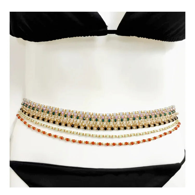 Beaded Waist Chain for Women Fashion Body Chain Beads Adjustable Boho Layered Belly Chain Jewelry Body Accessories