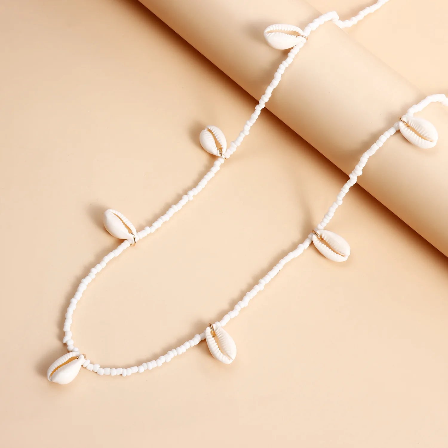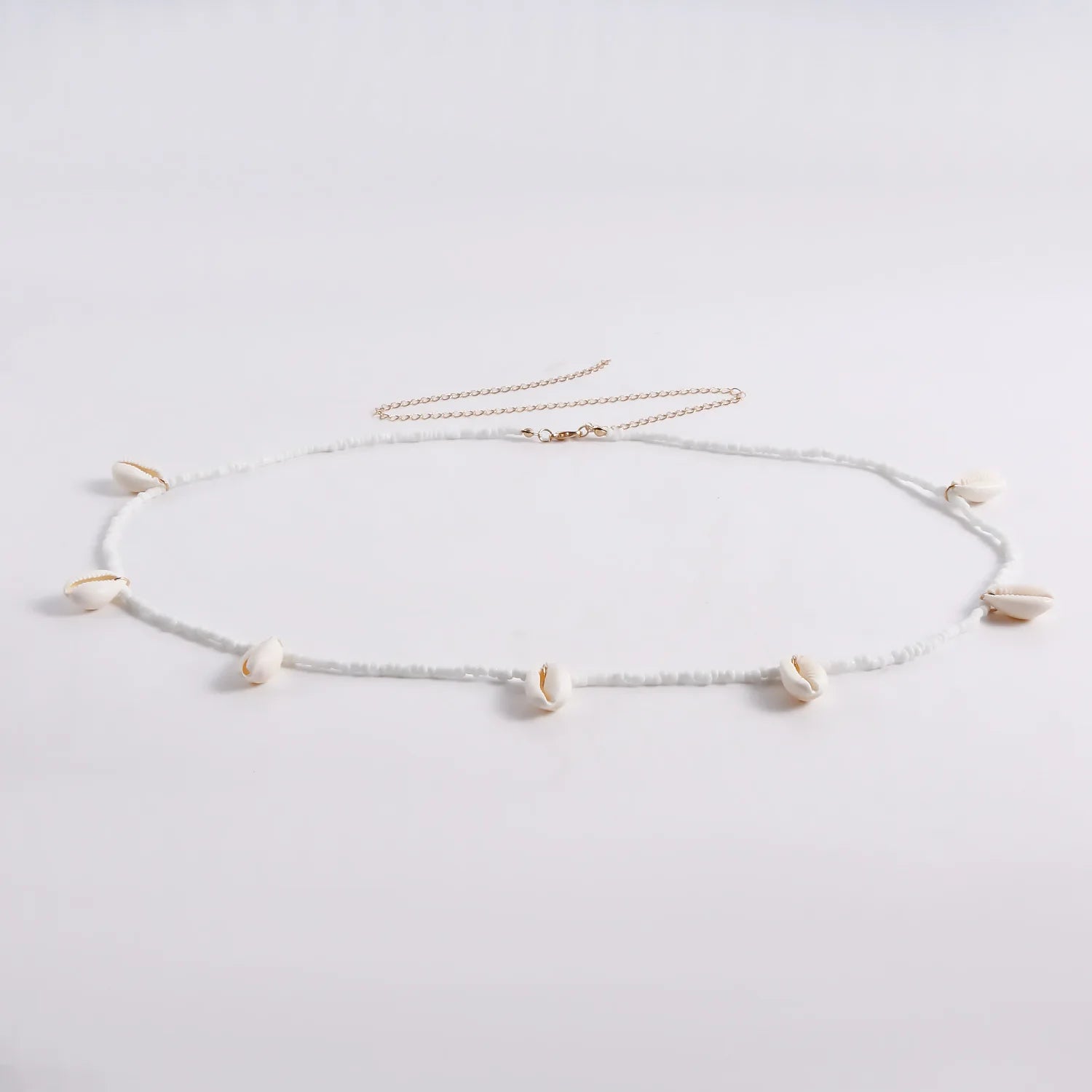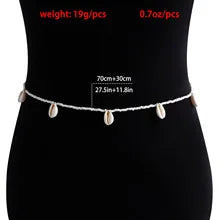 Bohemian White Beaded Waist Chain | Handmade Seashell Elastic Hip Jewelry for Beach Vacation & Women's Fashion Accessories