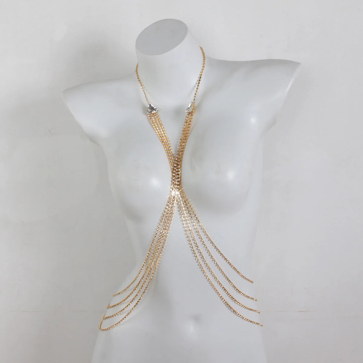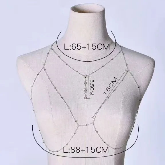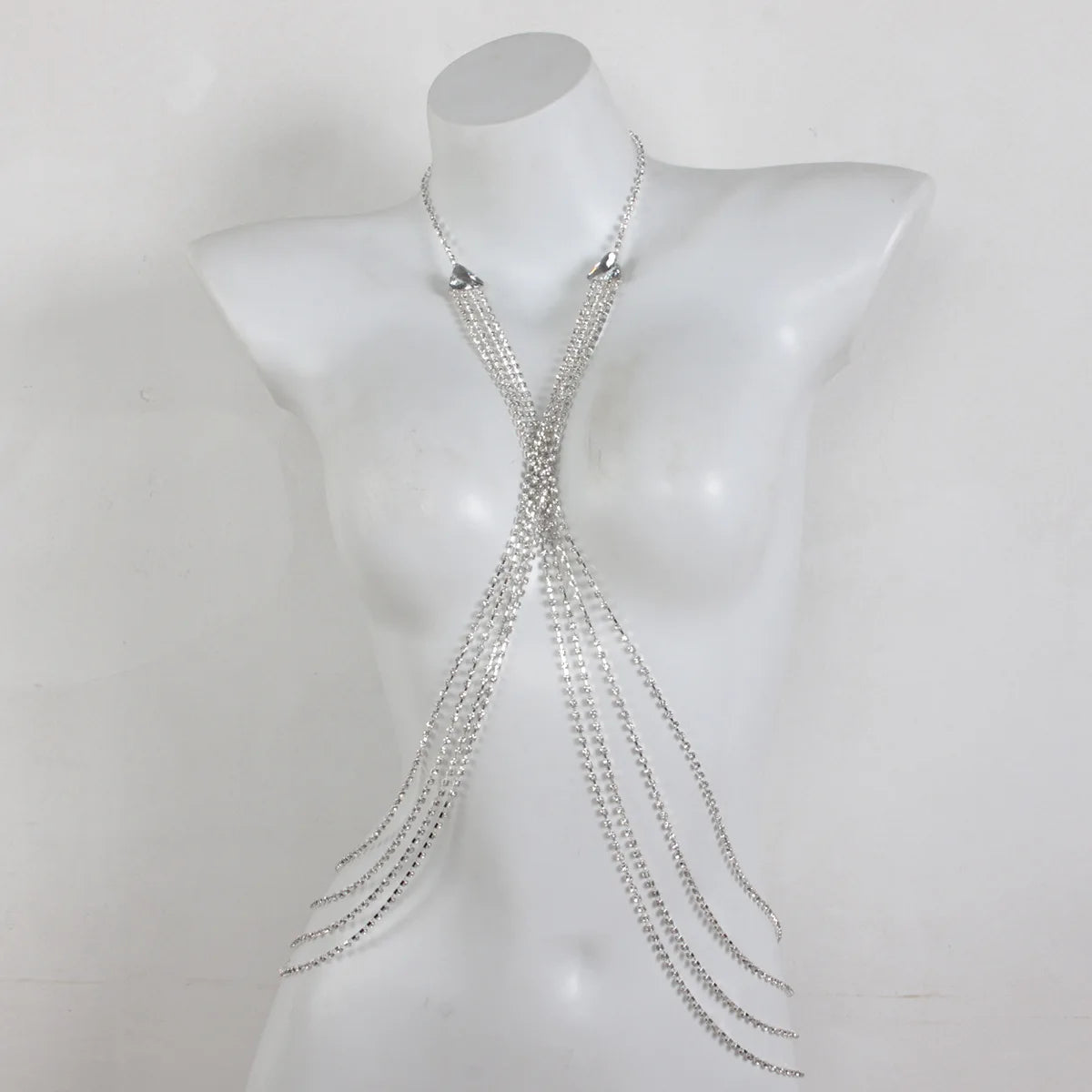 Fashion Body Jewelry Womens Glitter Tassels Adjustable Metal Chains Sexy Body Chain for Sexy Club Dresses