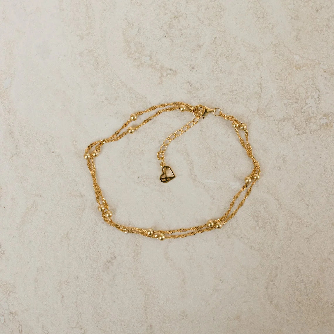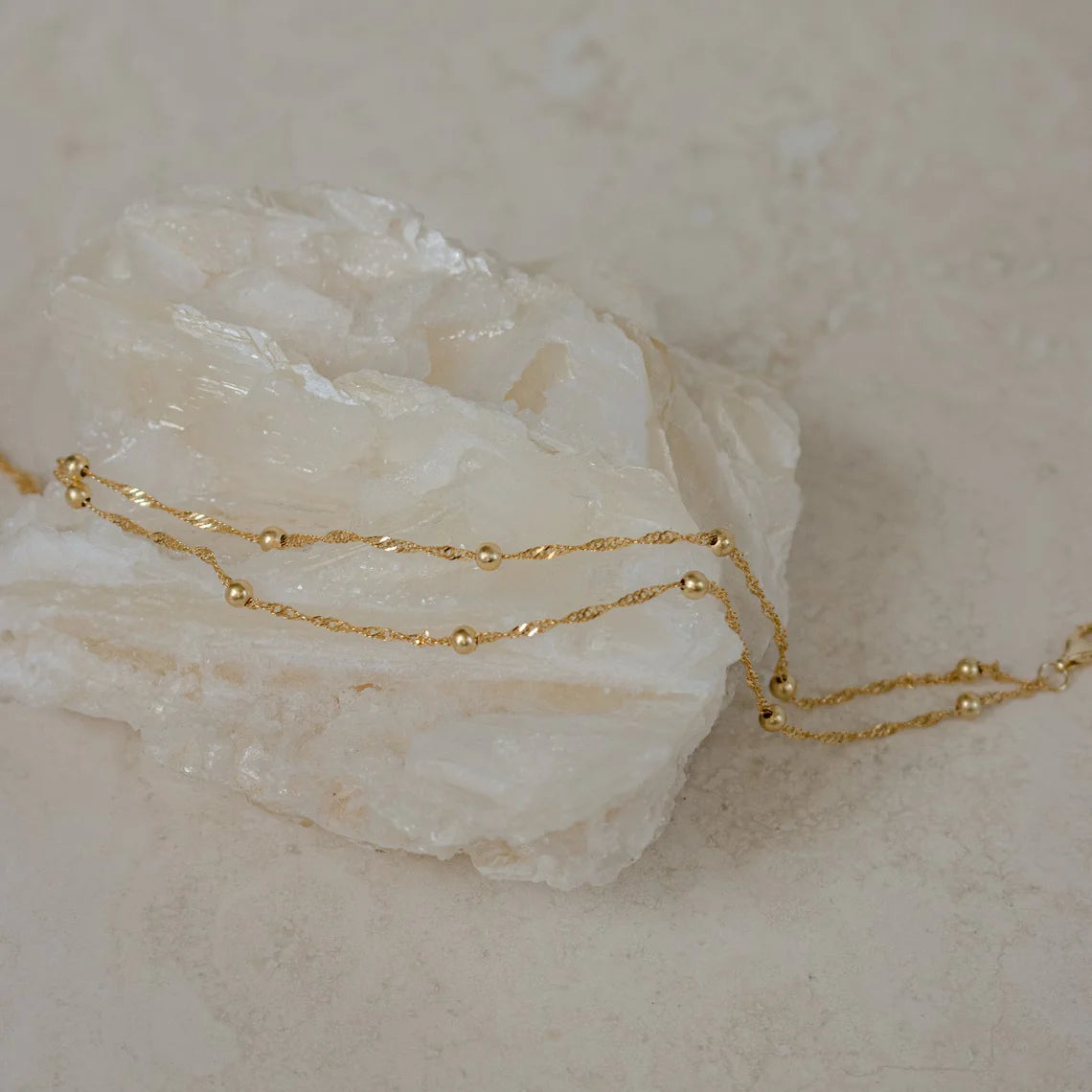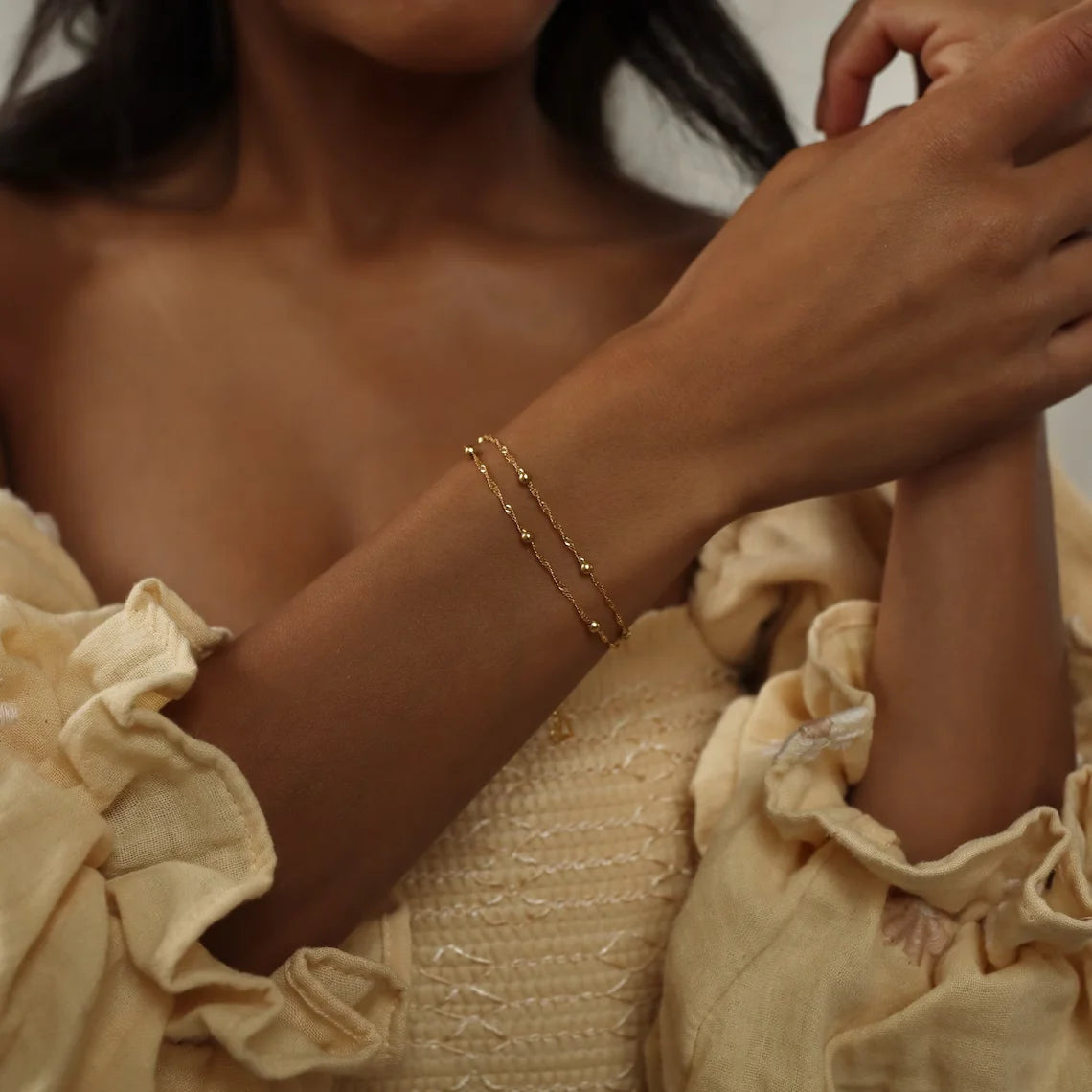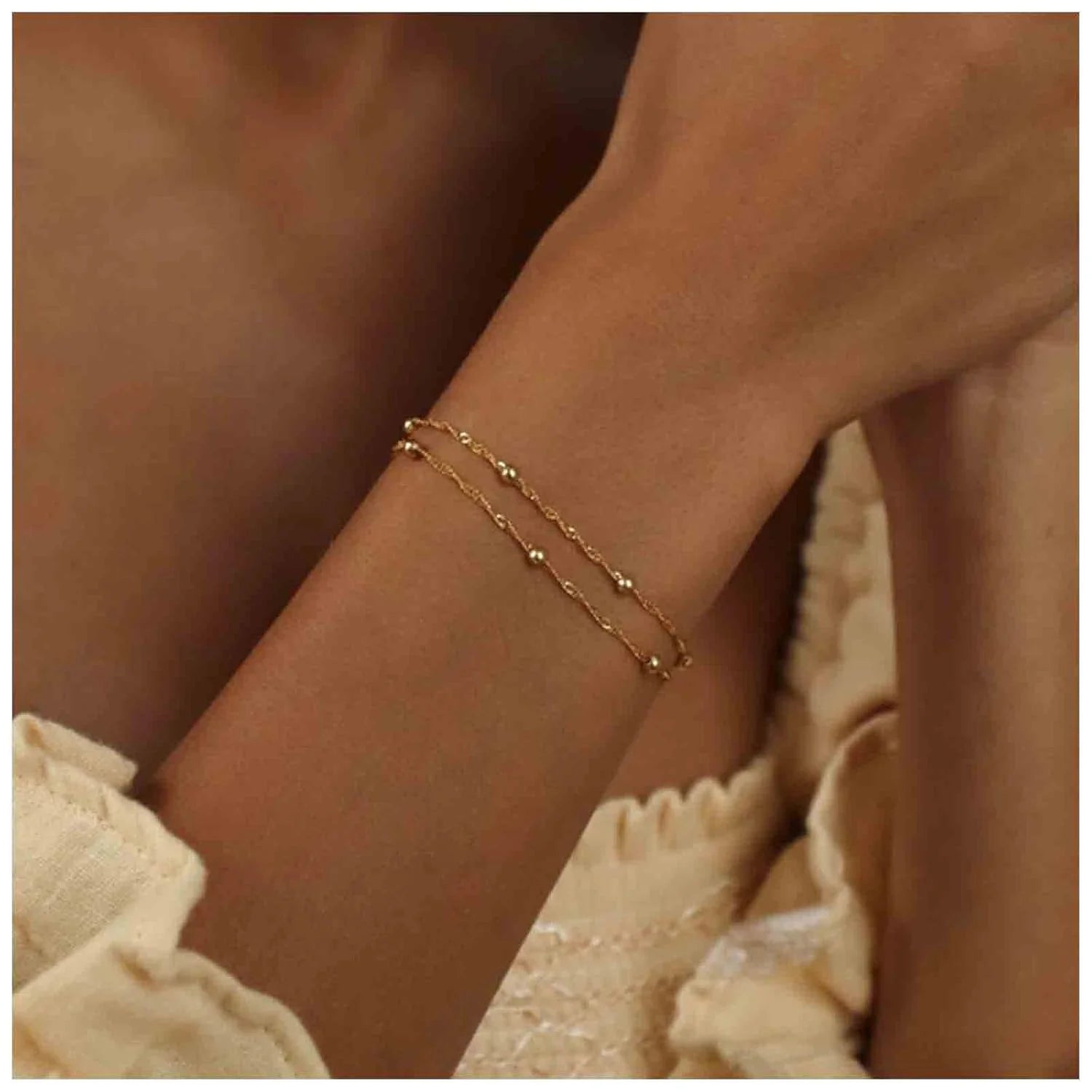 Women Duo Bead Chain Bracelet Delicate18k Gold Plated Bracelet Multi Layered Fine Beaded Bracelets for Everyday Wear