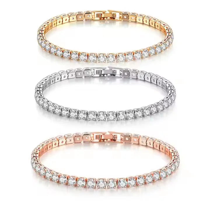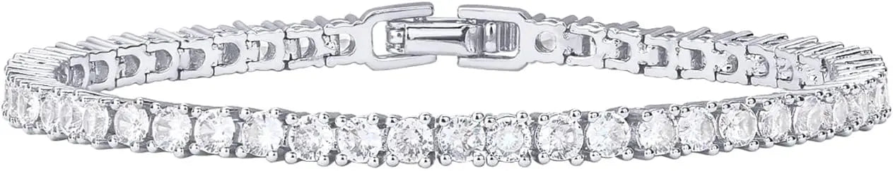 Fashion Jewelry 18k White Gold Plated Tennis Bracelet Classic Cubic Zirconia Stainless Steel Jewelry Bracelet for Women