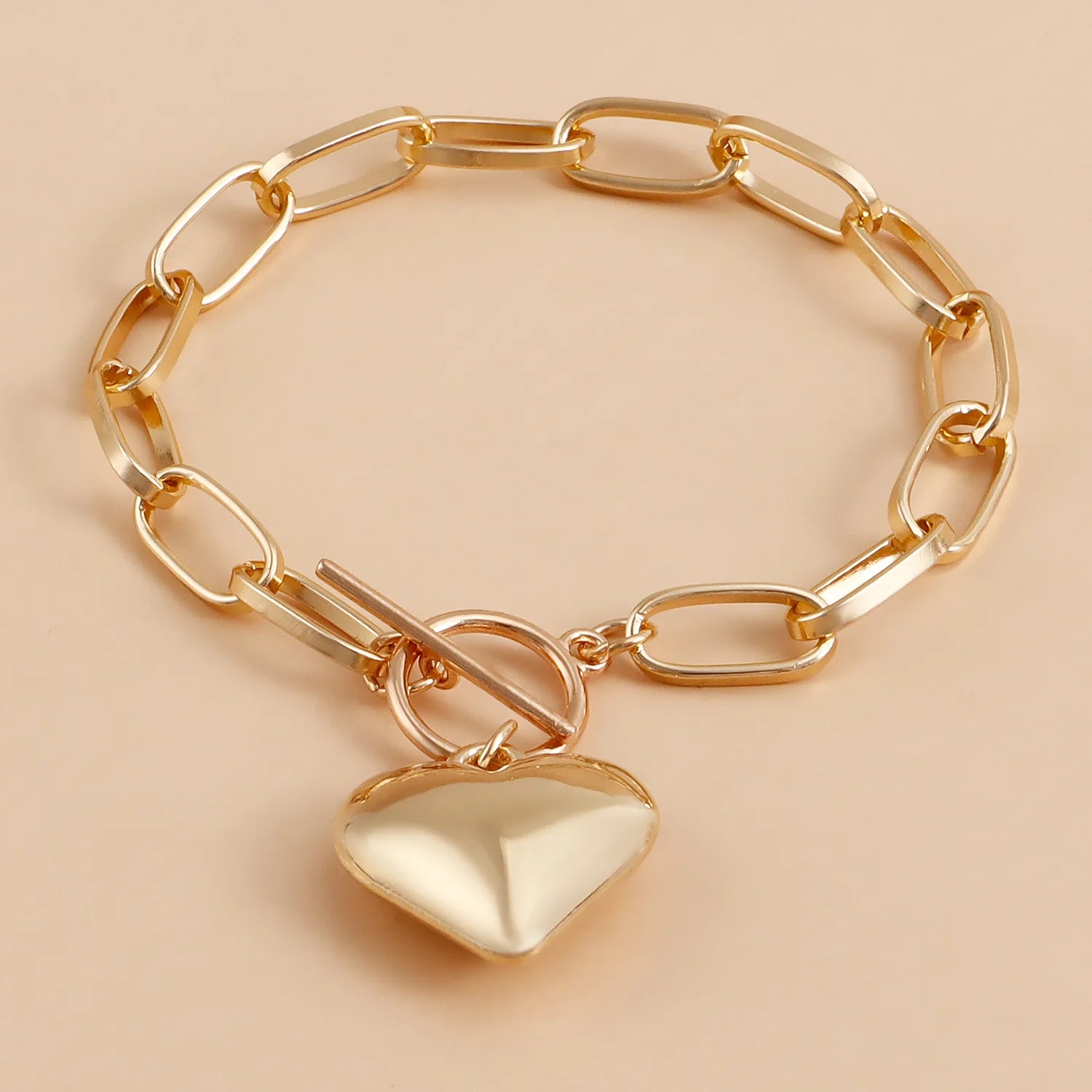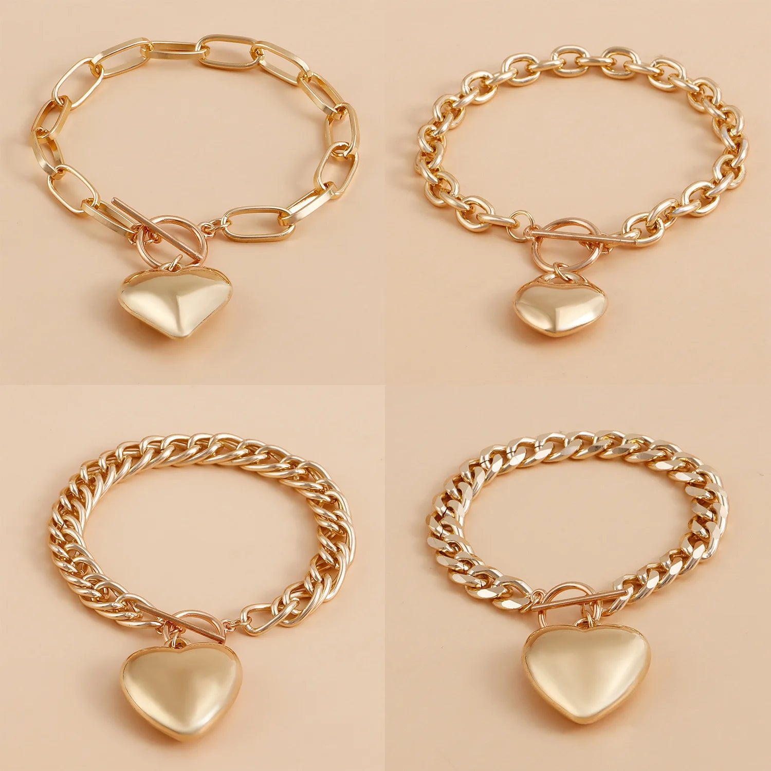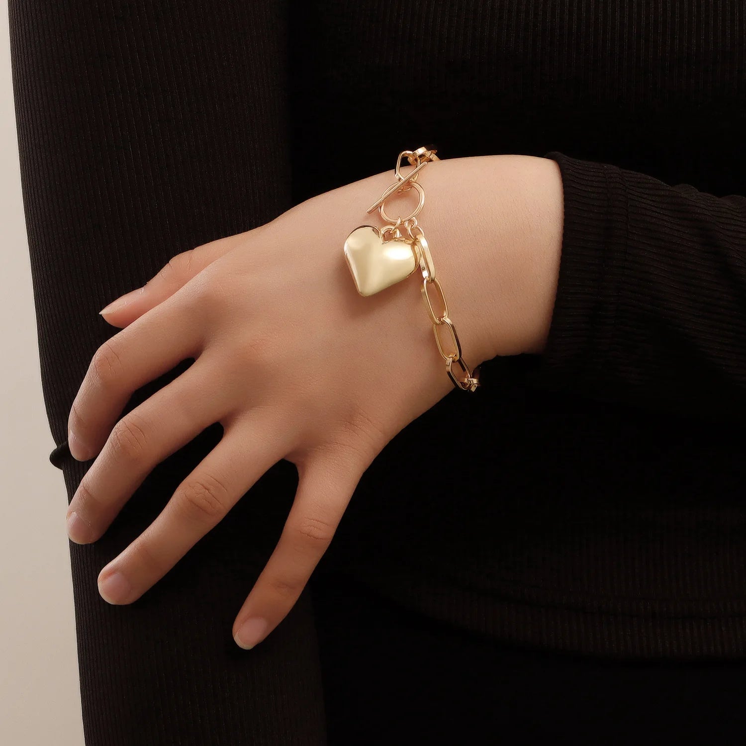 Haute Stereoscopic Love Bracelets Fashion Jewelry Simple Gold Heart Charm Bracelets Paper Clip Chain Hand Chain for Women