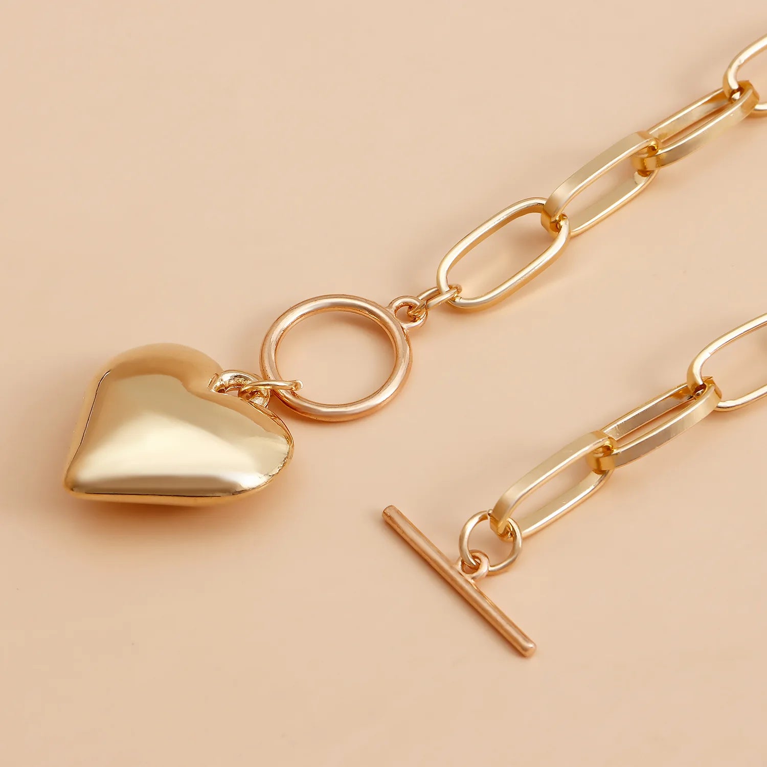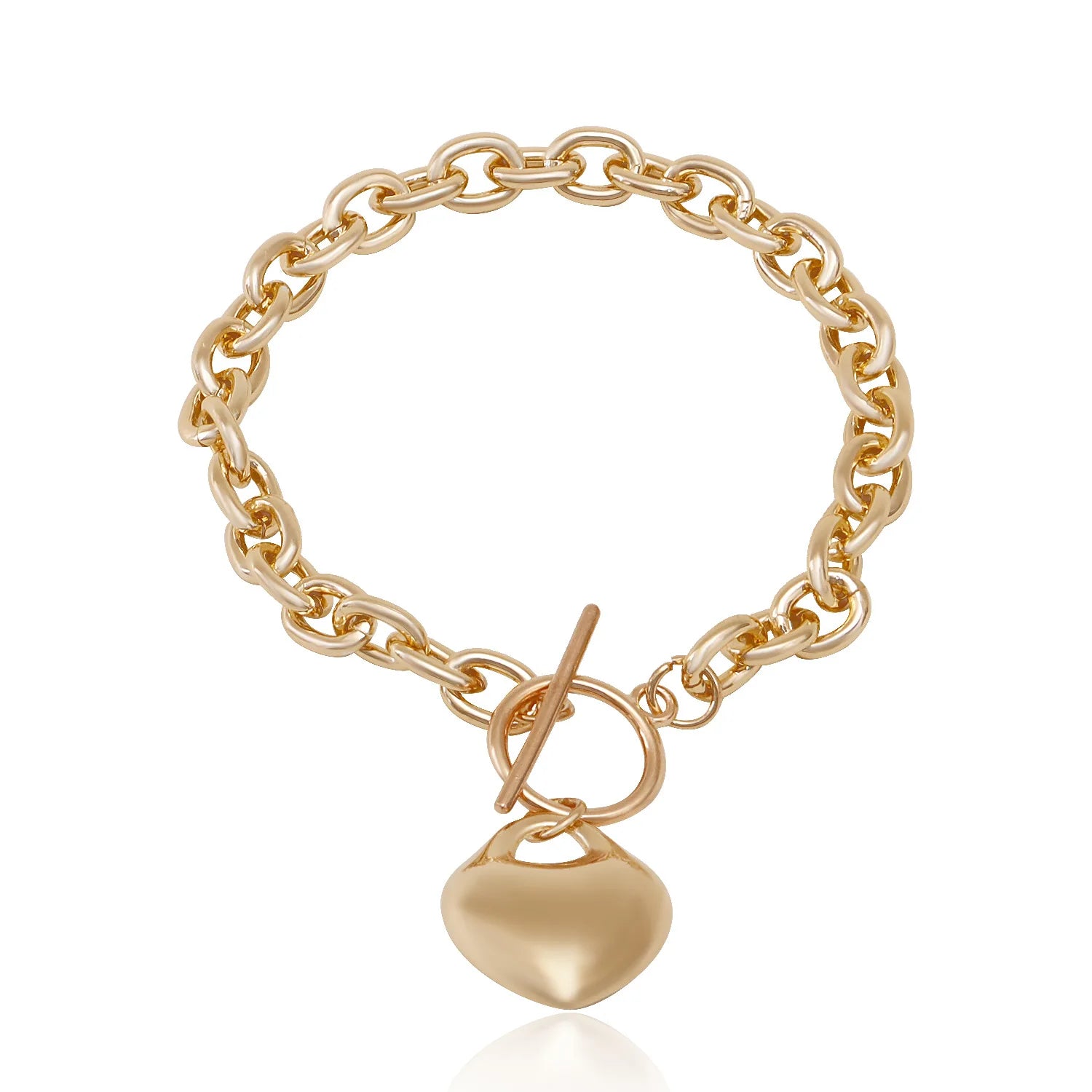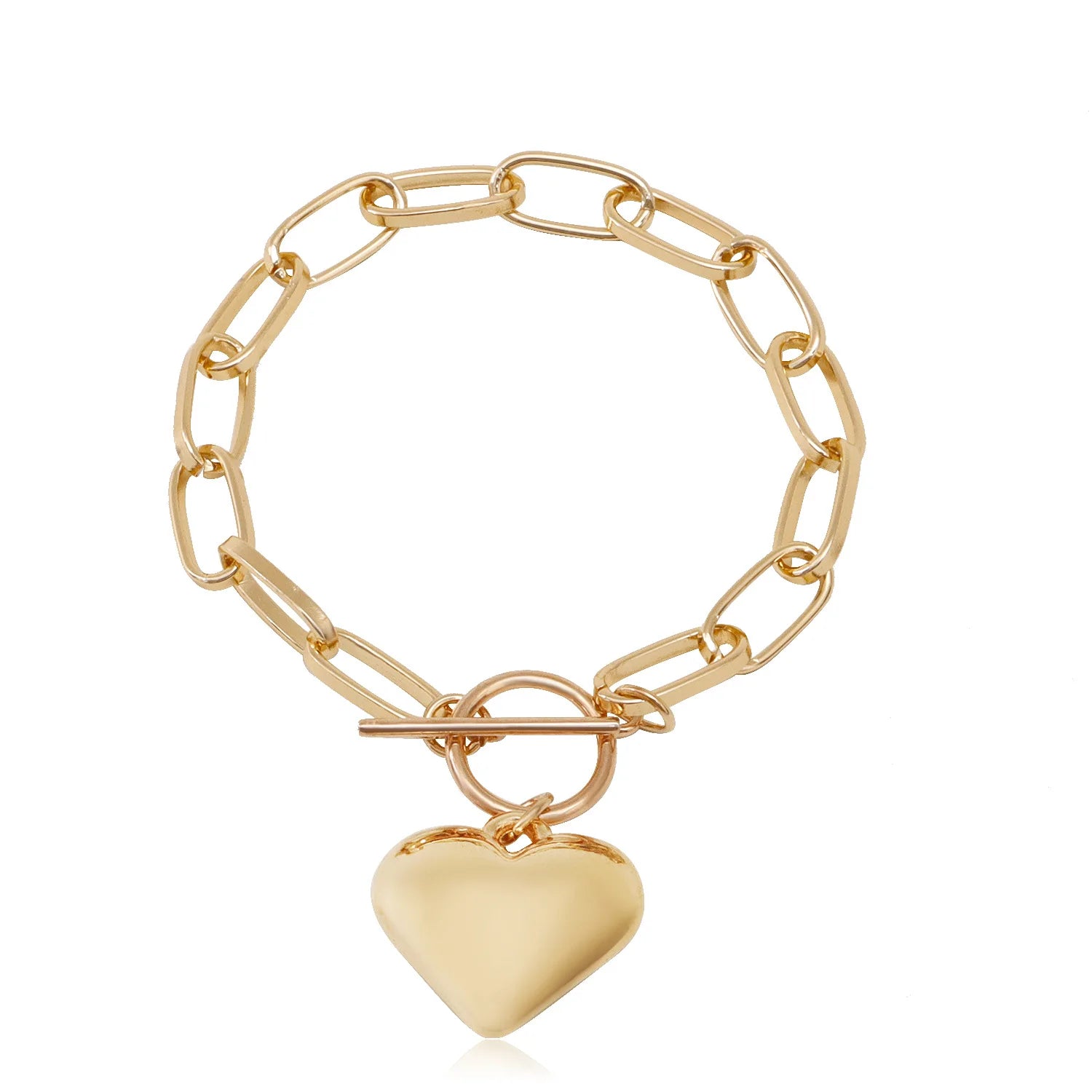 Haute Stereoscopic Love Bracelets Fashion Jewelry Simple Gold Heart Charm Bracelets Paper Clip Chain Hand Chain for Women