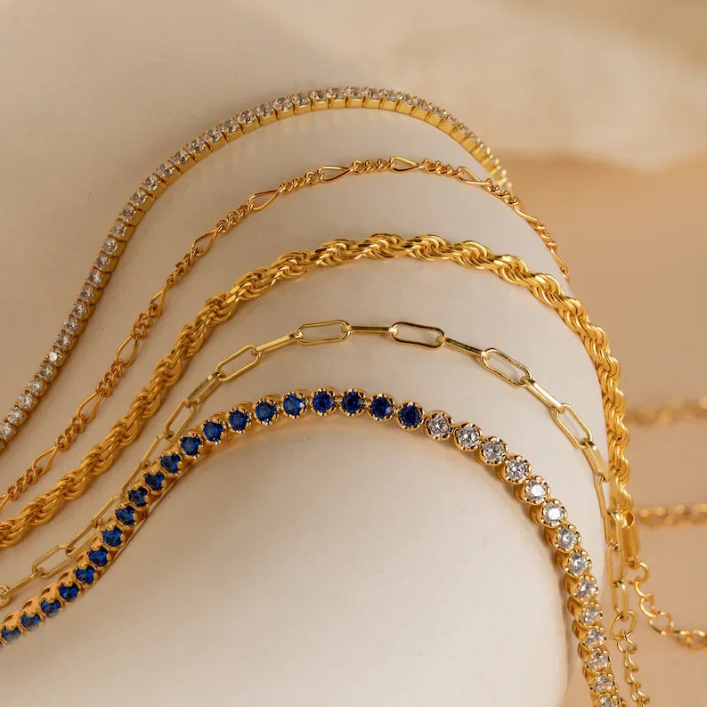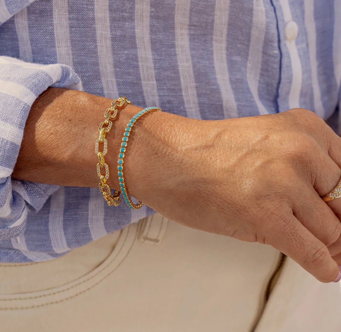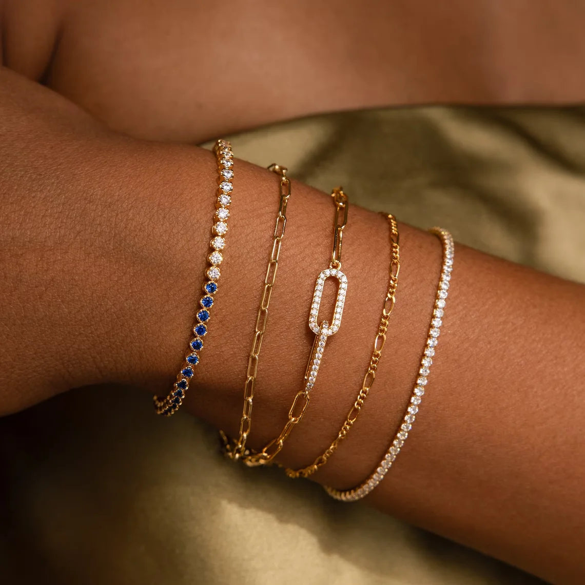 Dainty Diamond Link Chain Bracelets Minimalist Paperclip Chain Bracelet Classic Blue Diamond Tennis Bracelet for Ladies