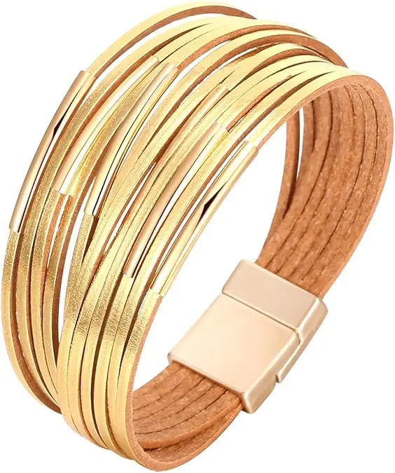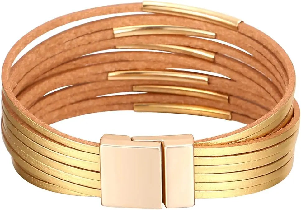 Custom Multiple Colors Leather Wrap Bracelets for Women Vintage Multi Layers Magnetic Leather Bracelet