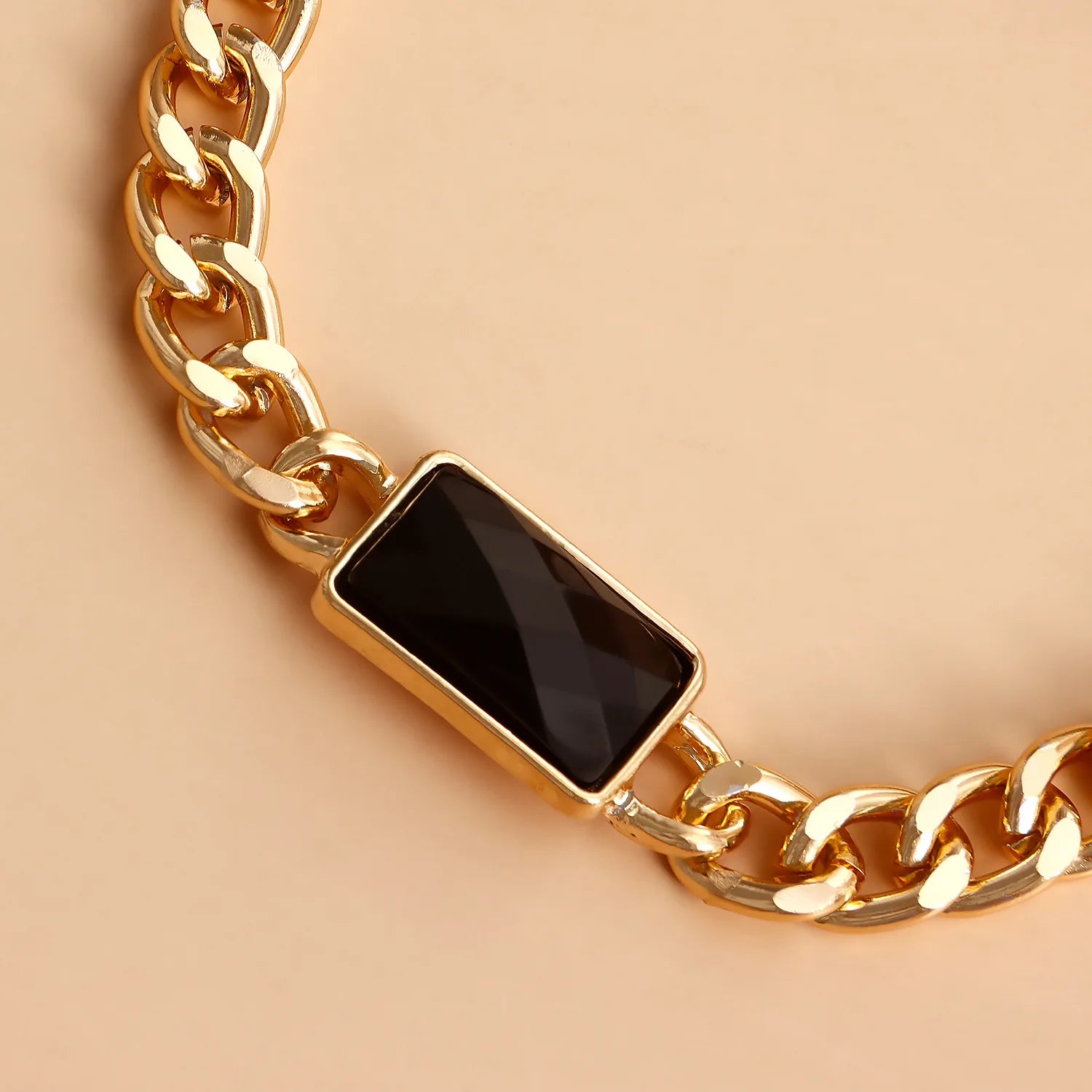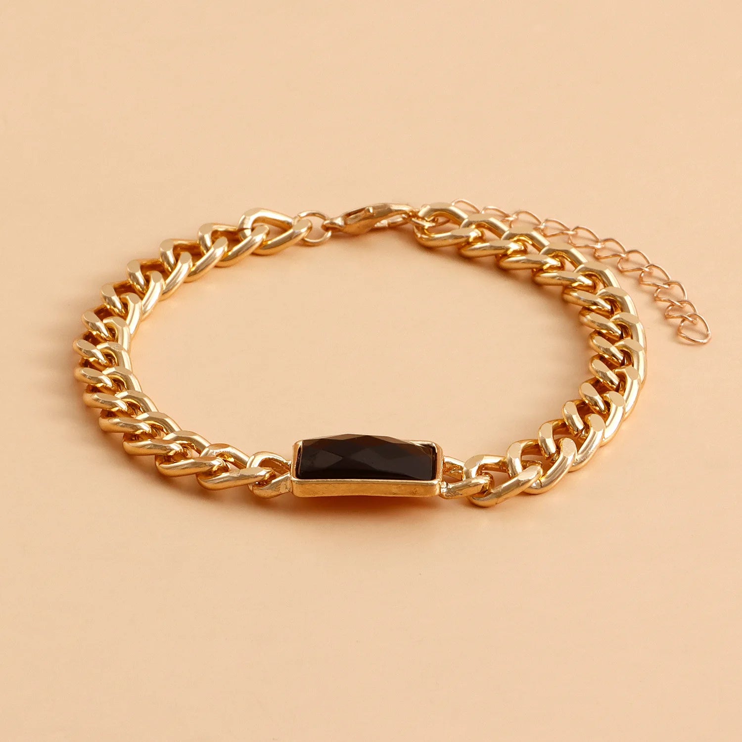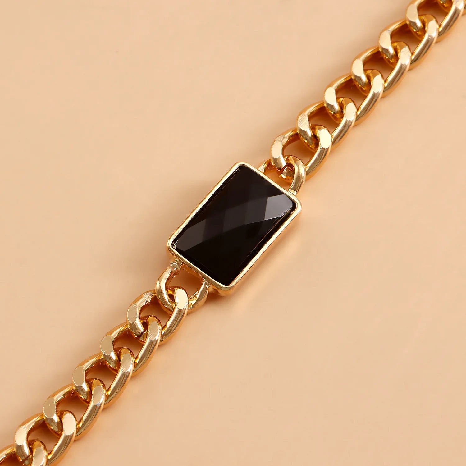 Sophisticated Black Square Bracelet Thick Chain Design Simple Versatile Gold Plated Chain Black Square Charm Bracelet for Women