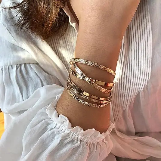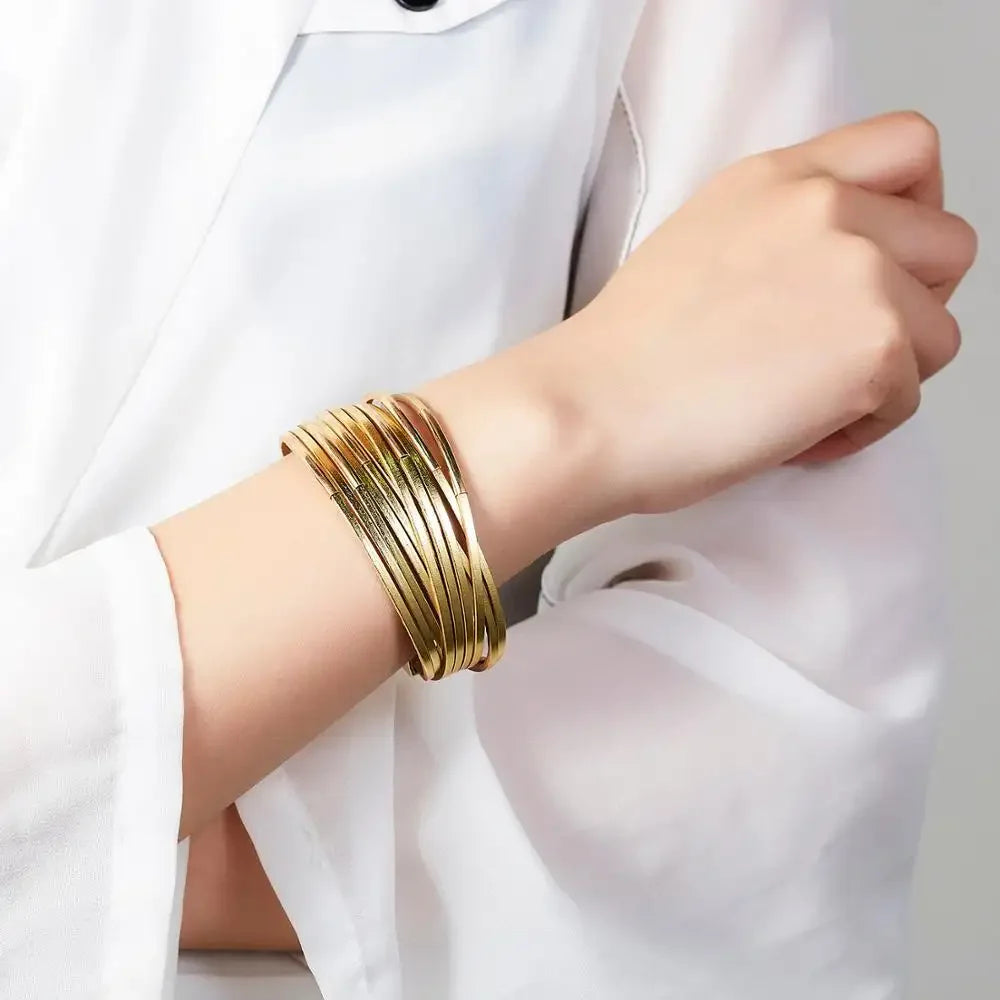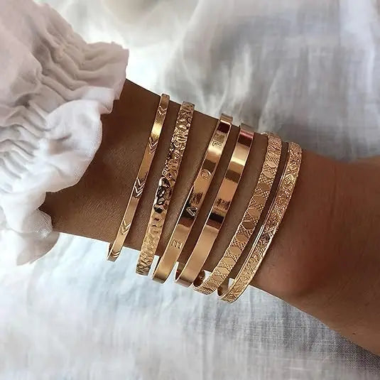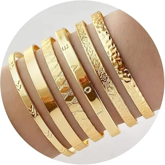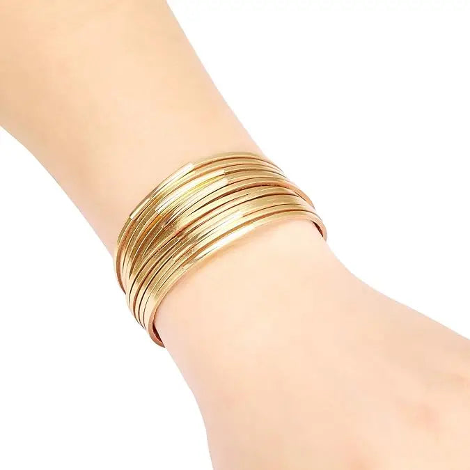 Fashion Style Women's Gold Bangle Bracelets Fine Jewelry 14k Gold Plated Multi Layer Stackable Cuff Bracelet Set