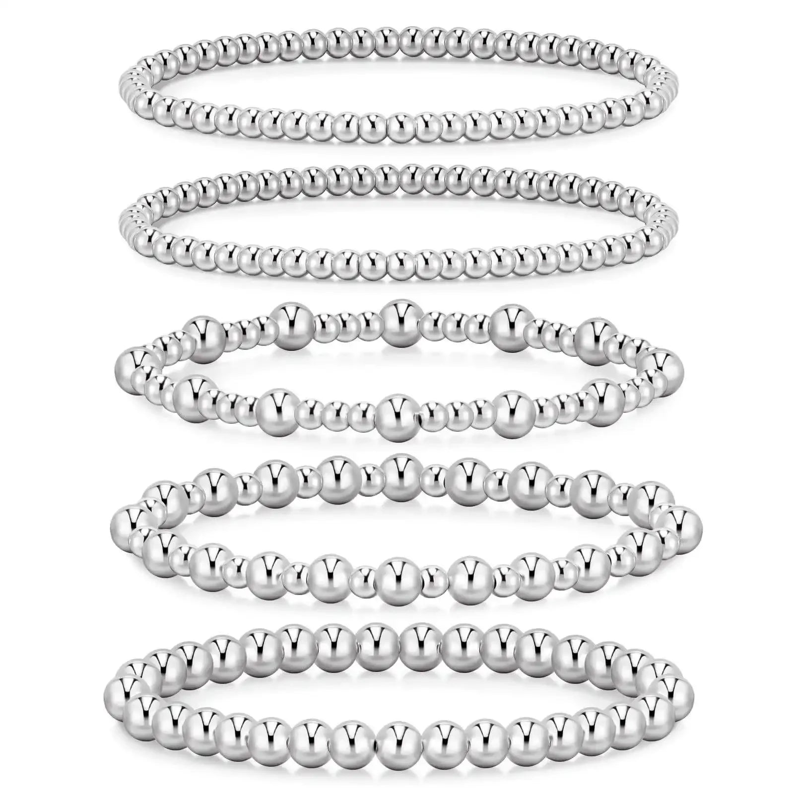 Gold Plated Beaded Bracelets Adjustable Stretch Bead Ball Bracelet Gold Jewelry Round Bead Bracelets Stack Set for Woman