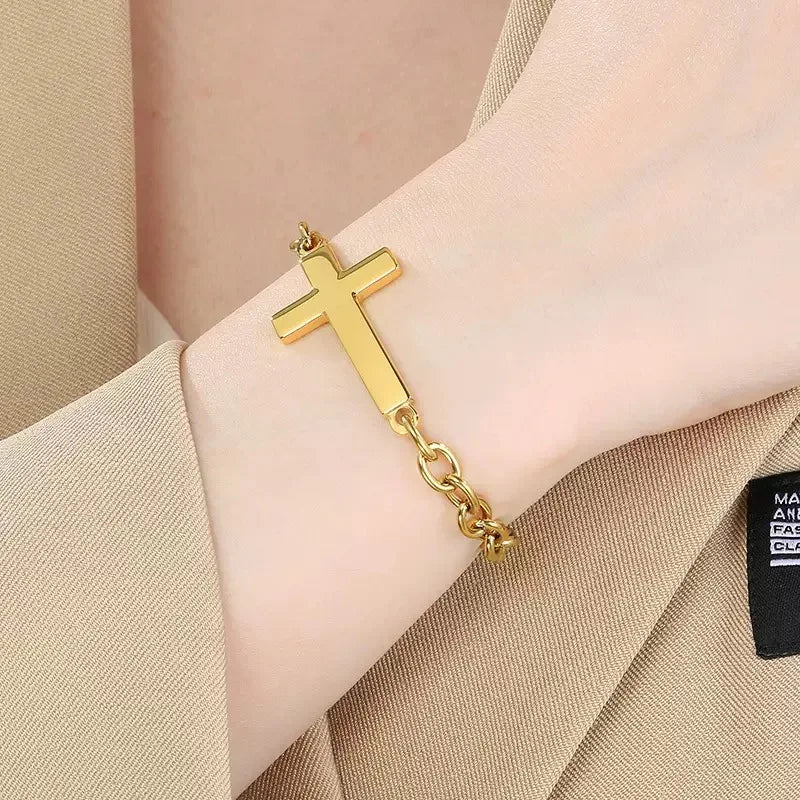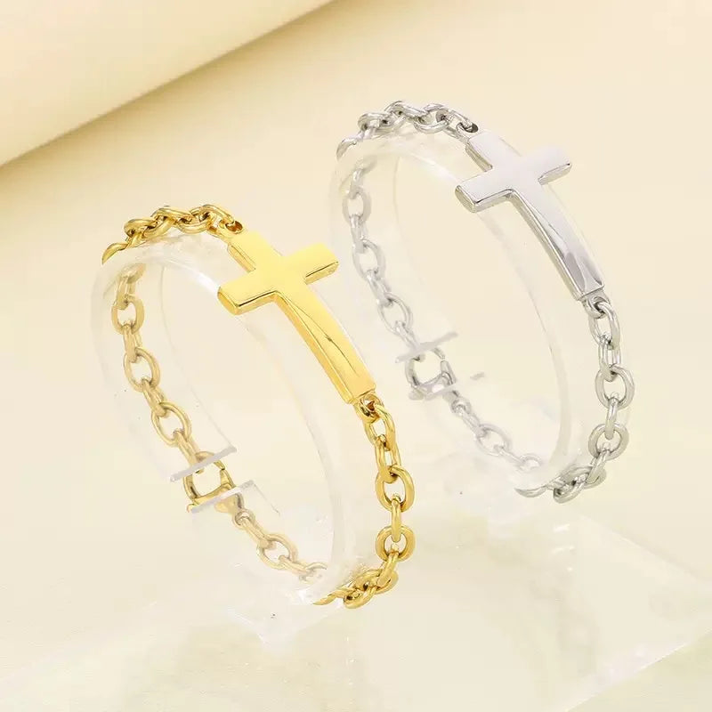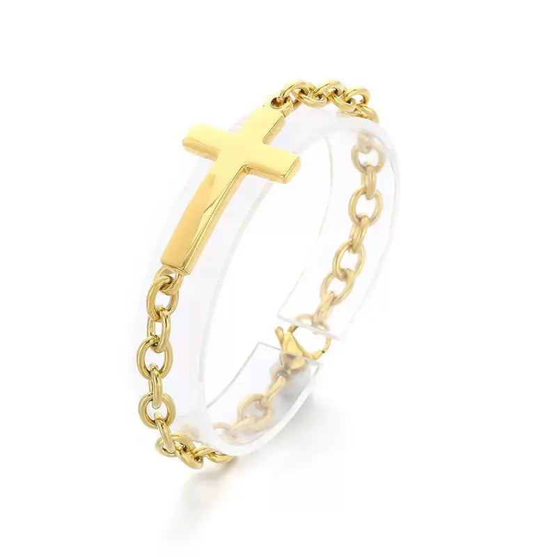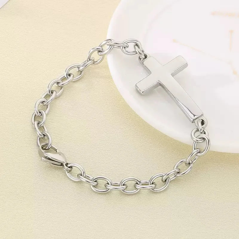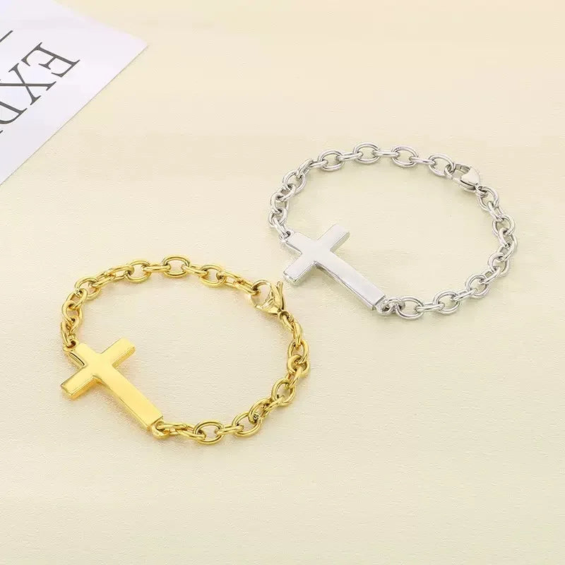 Wholesale Stainless Steel Hiphop Cross Bracelet Unisex Curved O Chain Charm Bracelet Durable Streetwear Jewelry for Men & Women