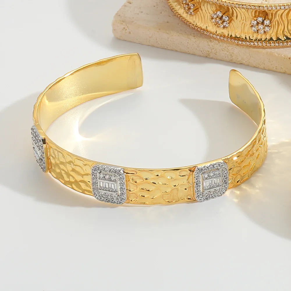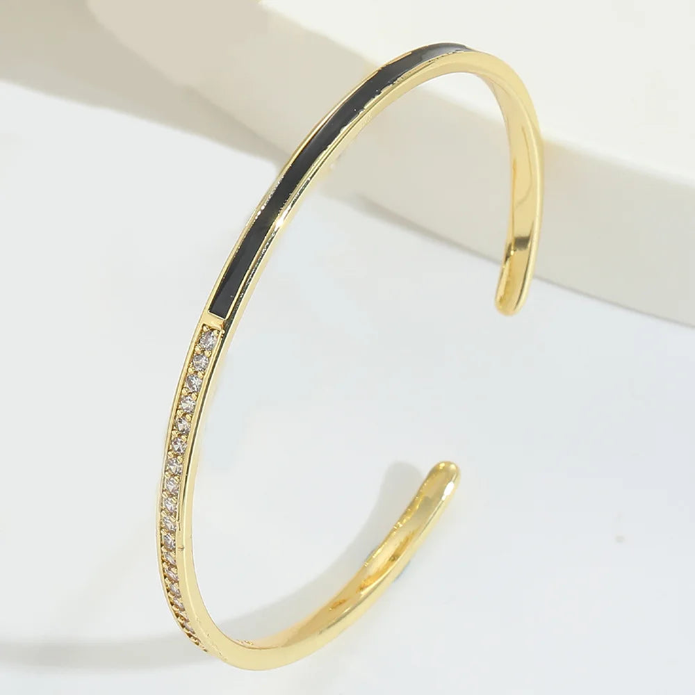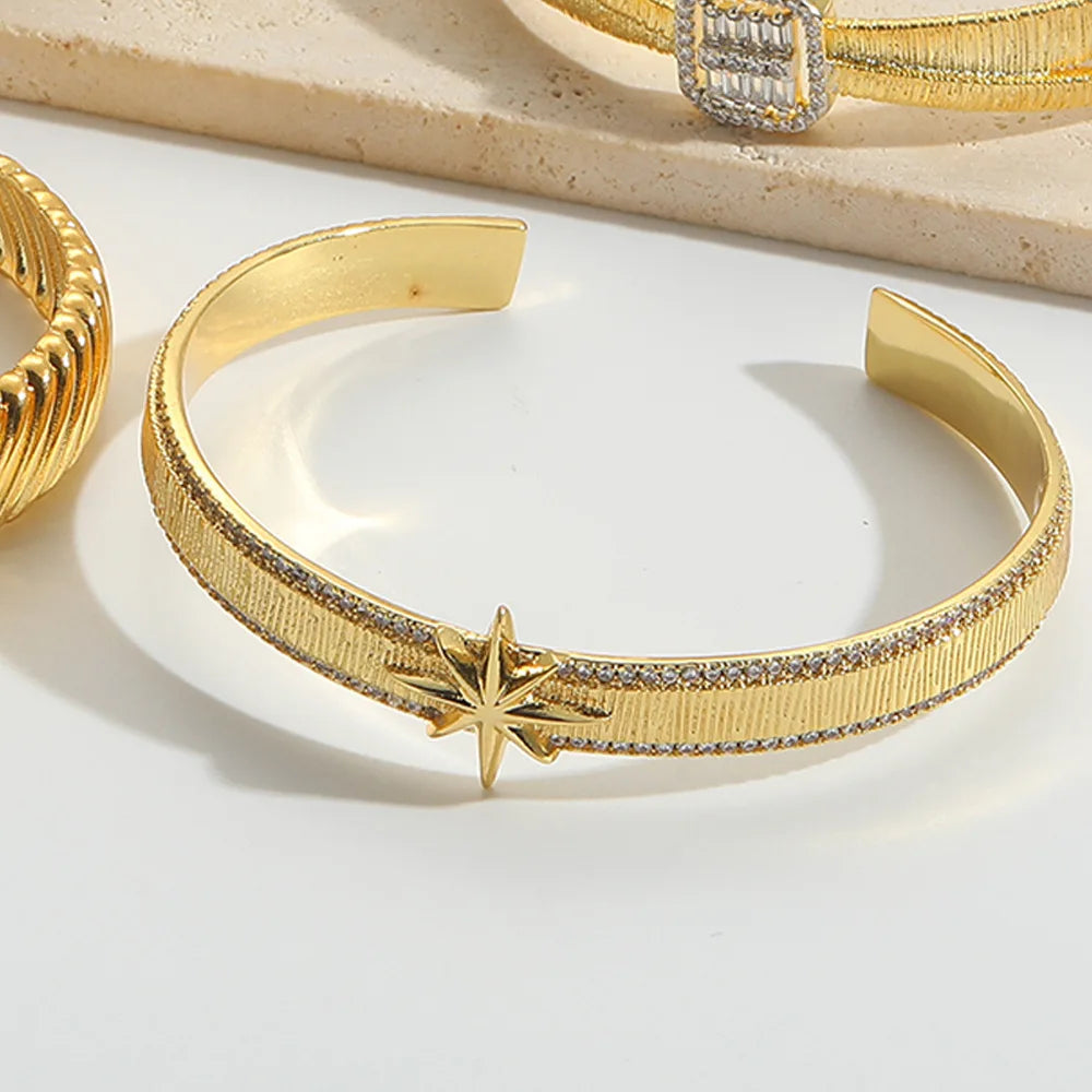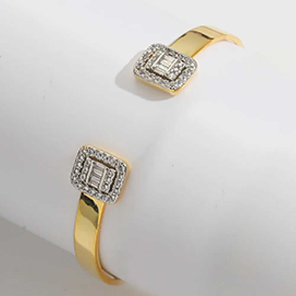 Luxury Women's 18K Gold Plated Copper Adjustable Cuff Bracelet with White Cubic Zirconia Micro Pave Elegant Trendy Jewelry