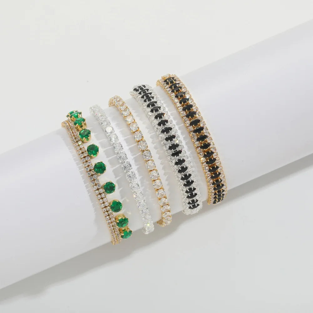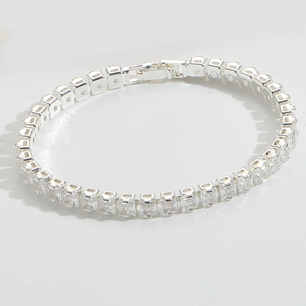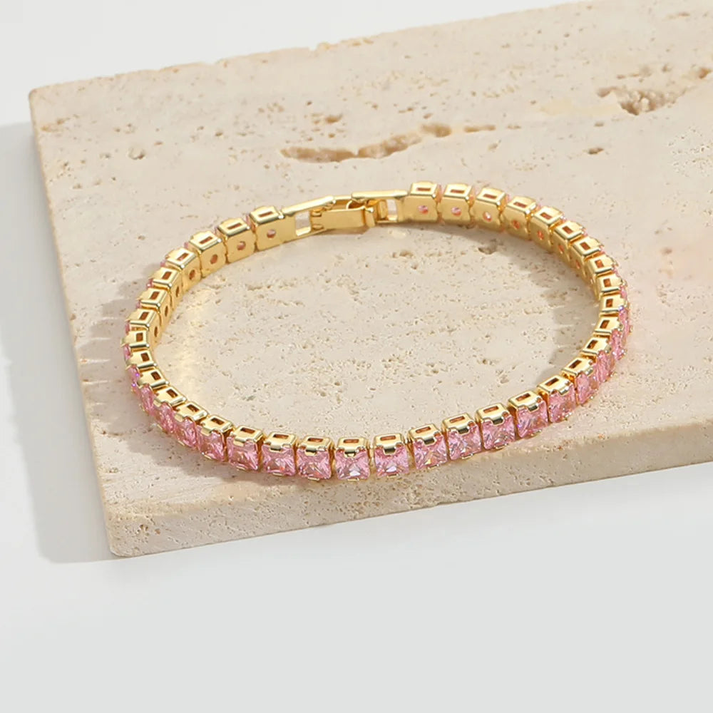 Luxury Iced Out Tennis Chain Bracelet for Women 18K Gold Plated Cubic Zirconia CZ Geometric Heart Round Square Bezel Bracelet