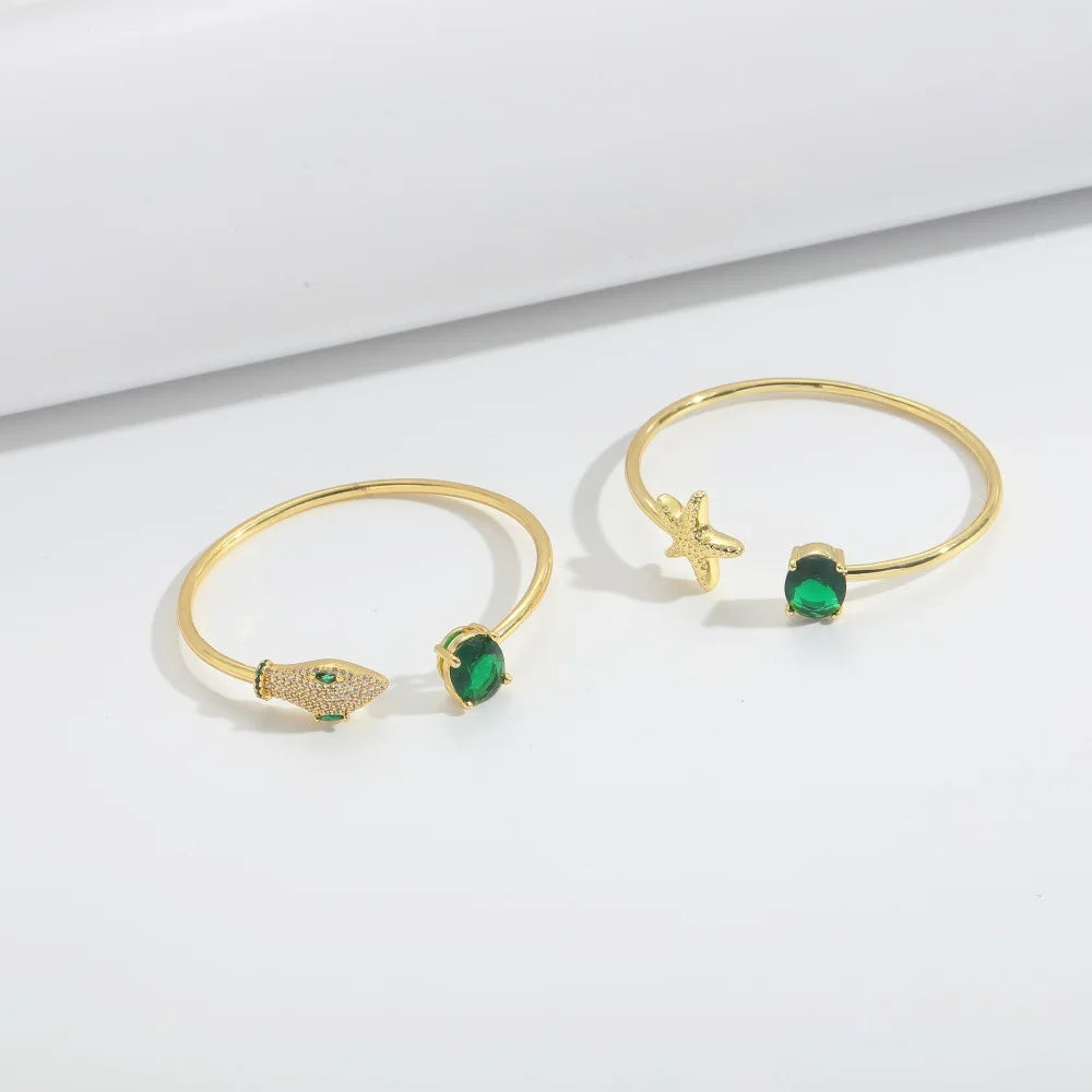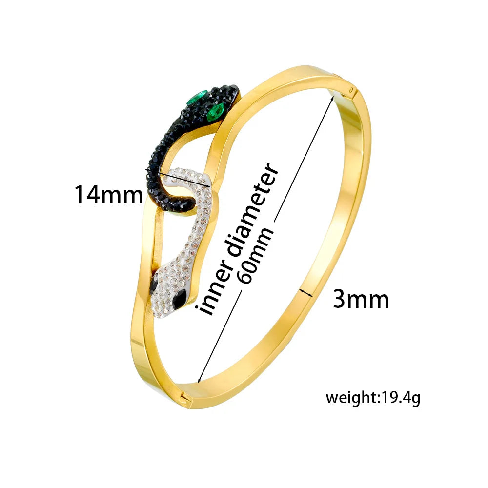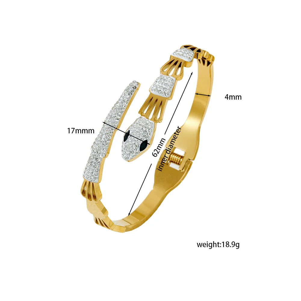 New Arrivals Non Tarnish Snake Cuff Bracelet 18K Gold Plated Stainless Steel Diamond Snake Head Bangle for Women