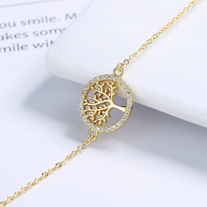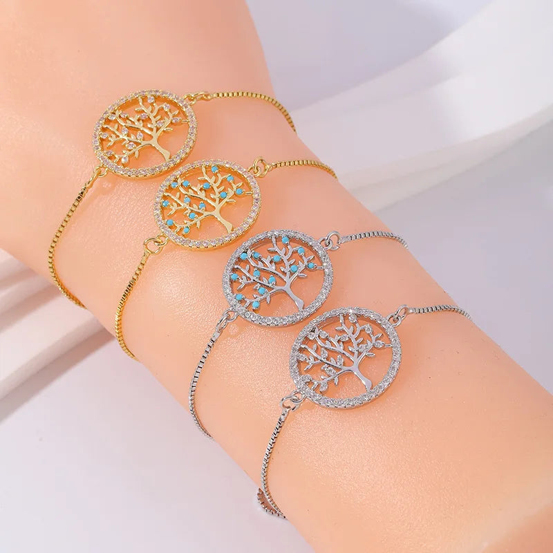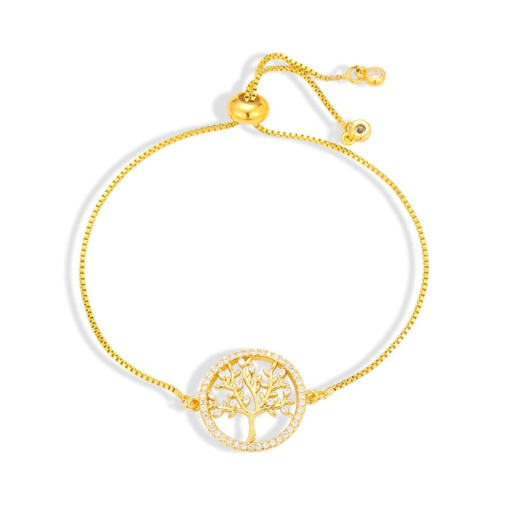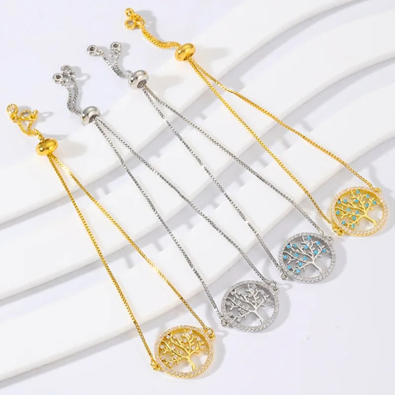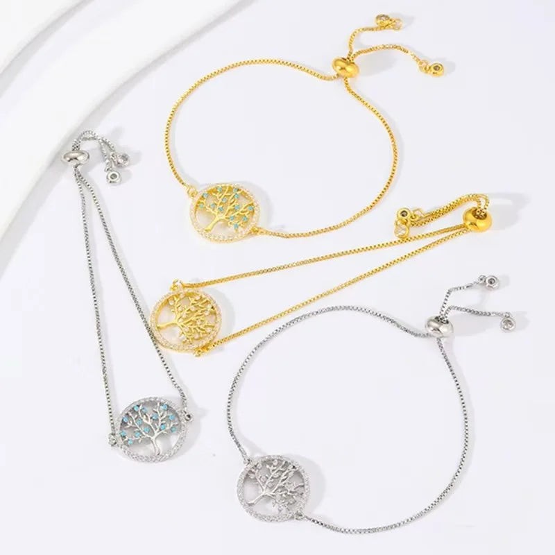 New Fashion 18K Gold Plated Tree of Life Bracelet Sparkling Zircon Adjustable Box Chain Jewelry for Women