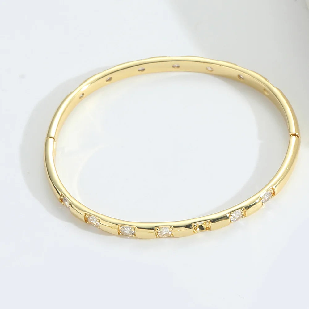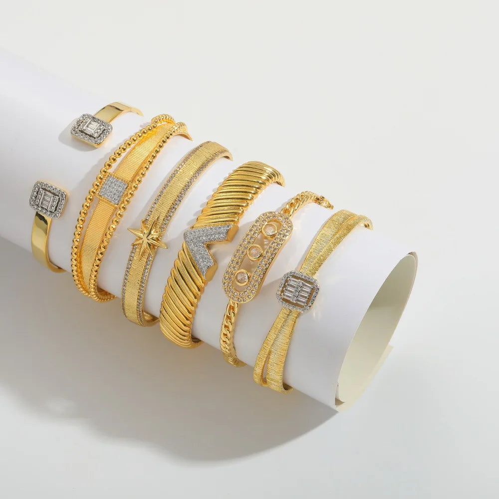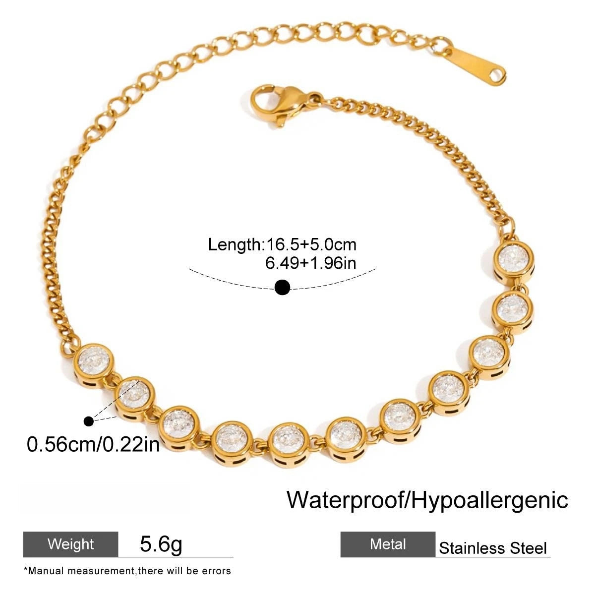 New Fashion European American Style 18K Gold Round Bracelet for Women Trendy Copper Bracelets with Zircon Main Stone
