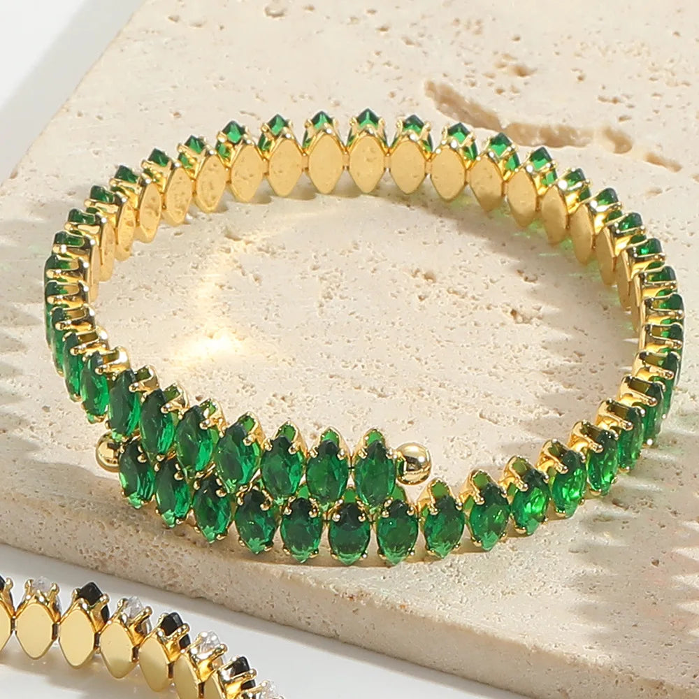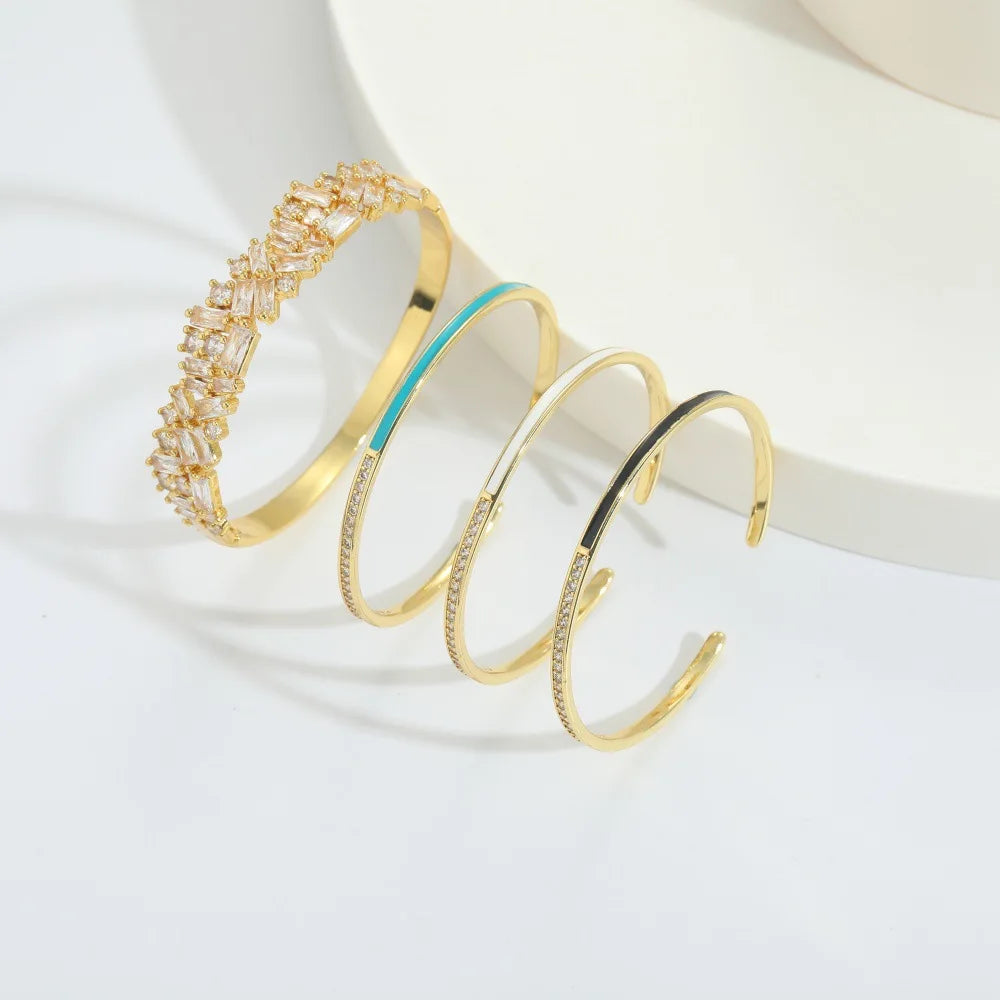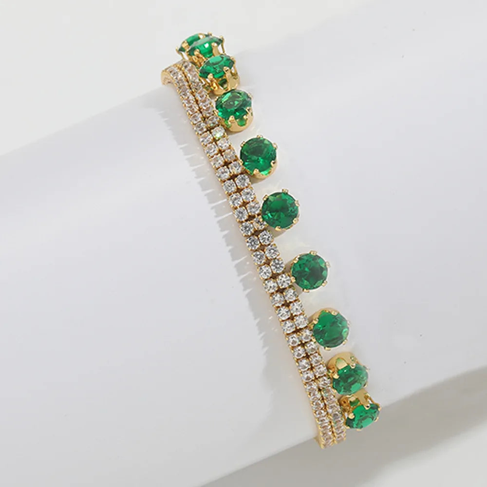 Copper Gold Plated Zircon Bracelet for Women Personalized Inlaid Glass Bracelet with Adjustable Chain Vintage Boho Jewelry