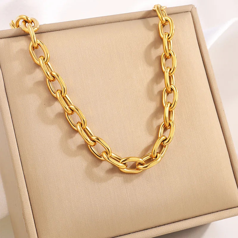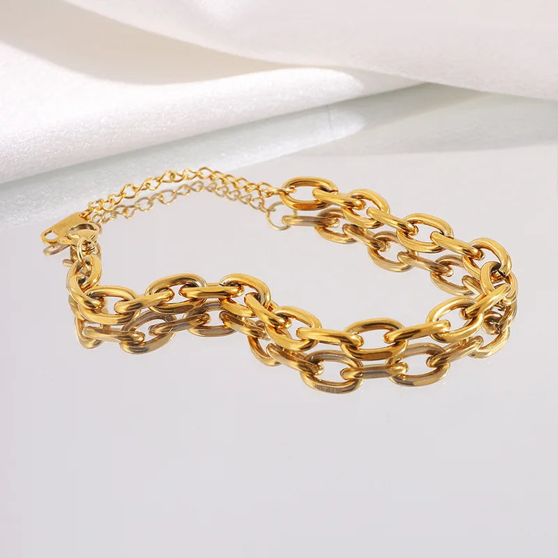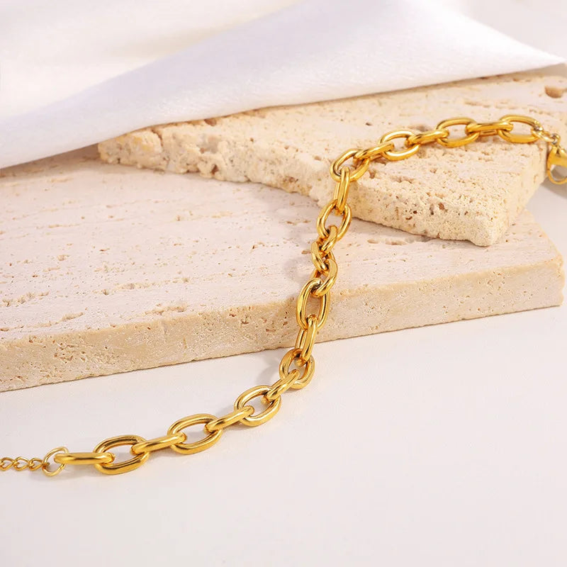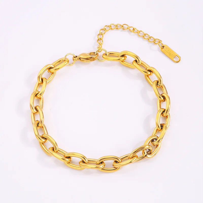 Wholesale Fashion Simple Stainless Steel 18k Gold Chunky Chain Bracelet for Women