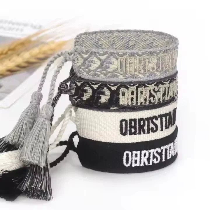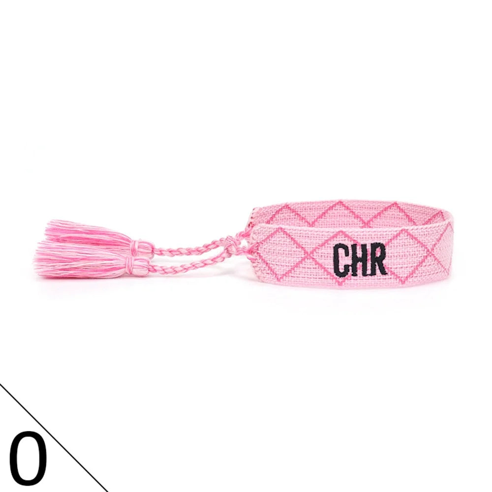 Luxury Women's Adjustable Tassel Thread Bracelet Stylish Fabric Woven with Embroidered Letter Style Fashionable Bangles