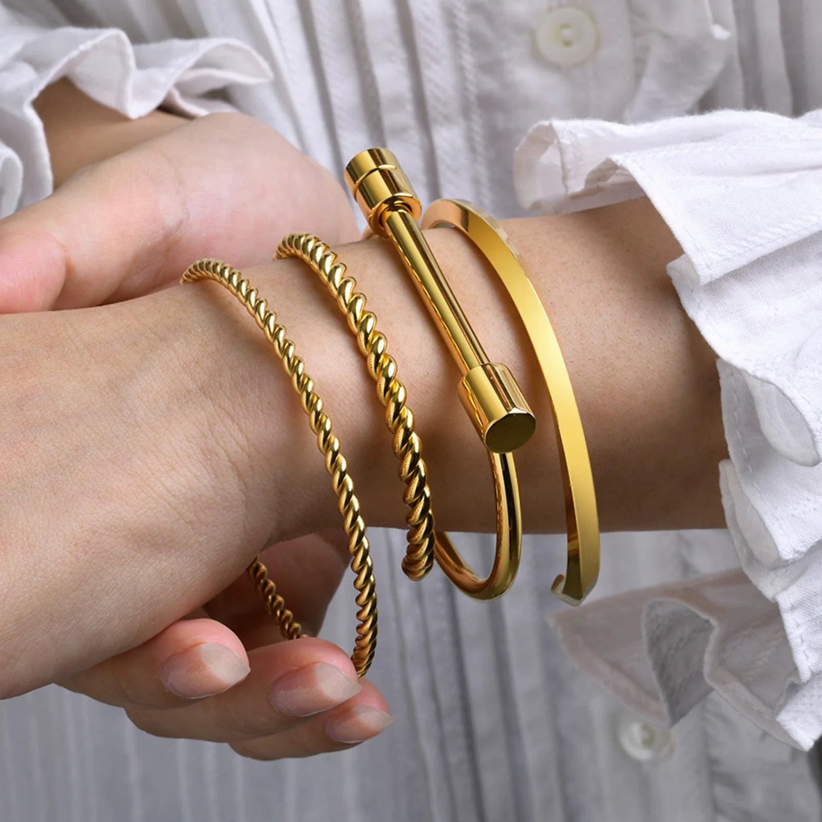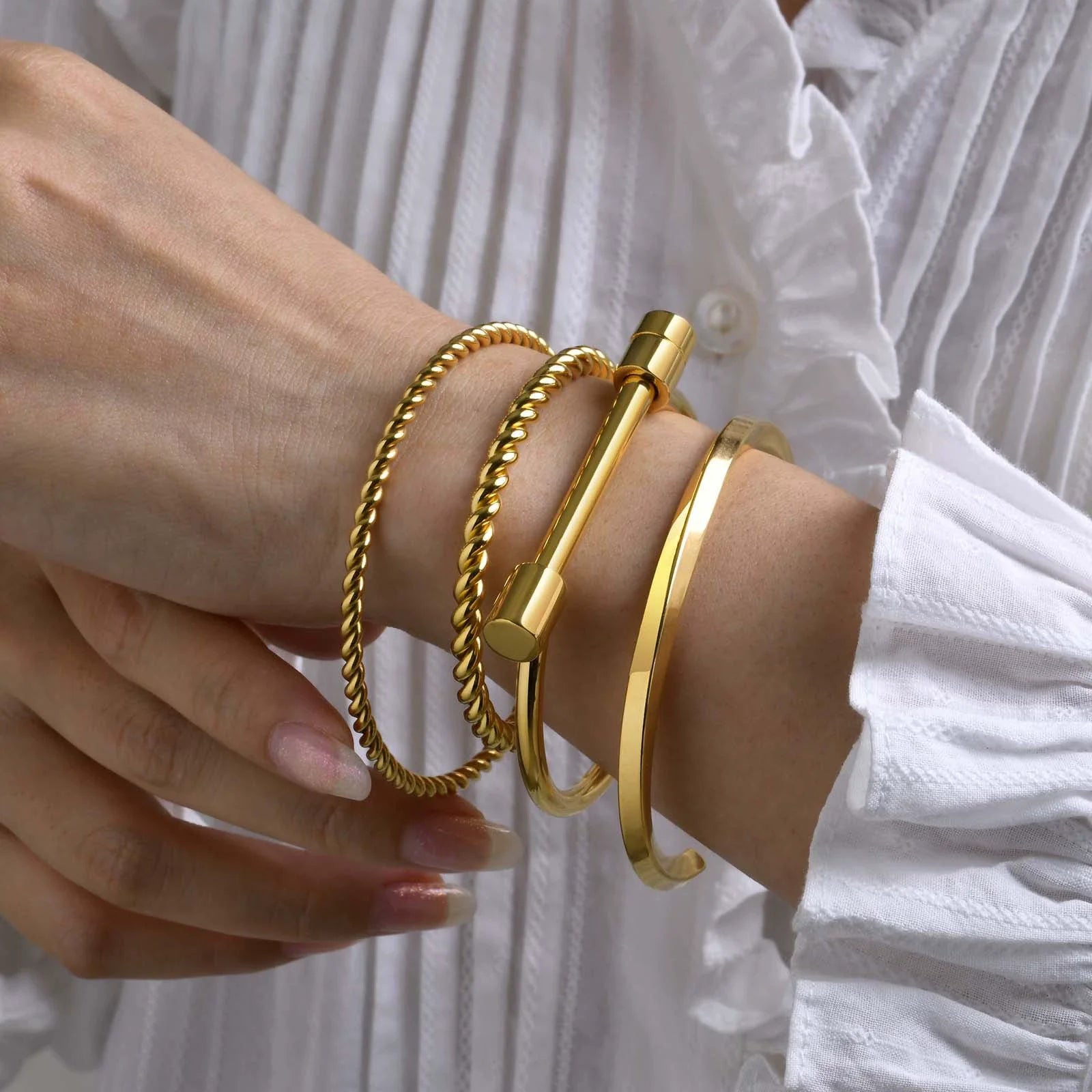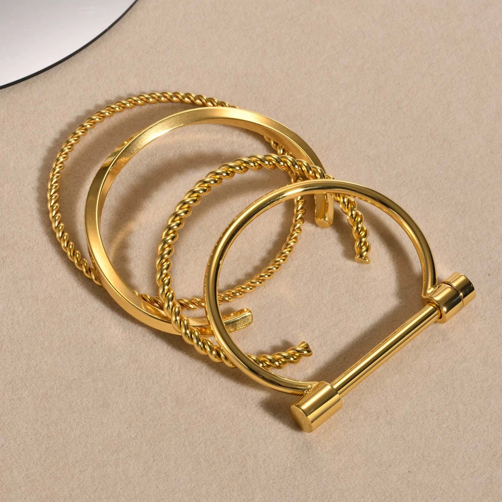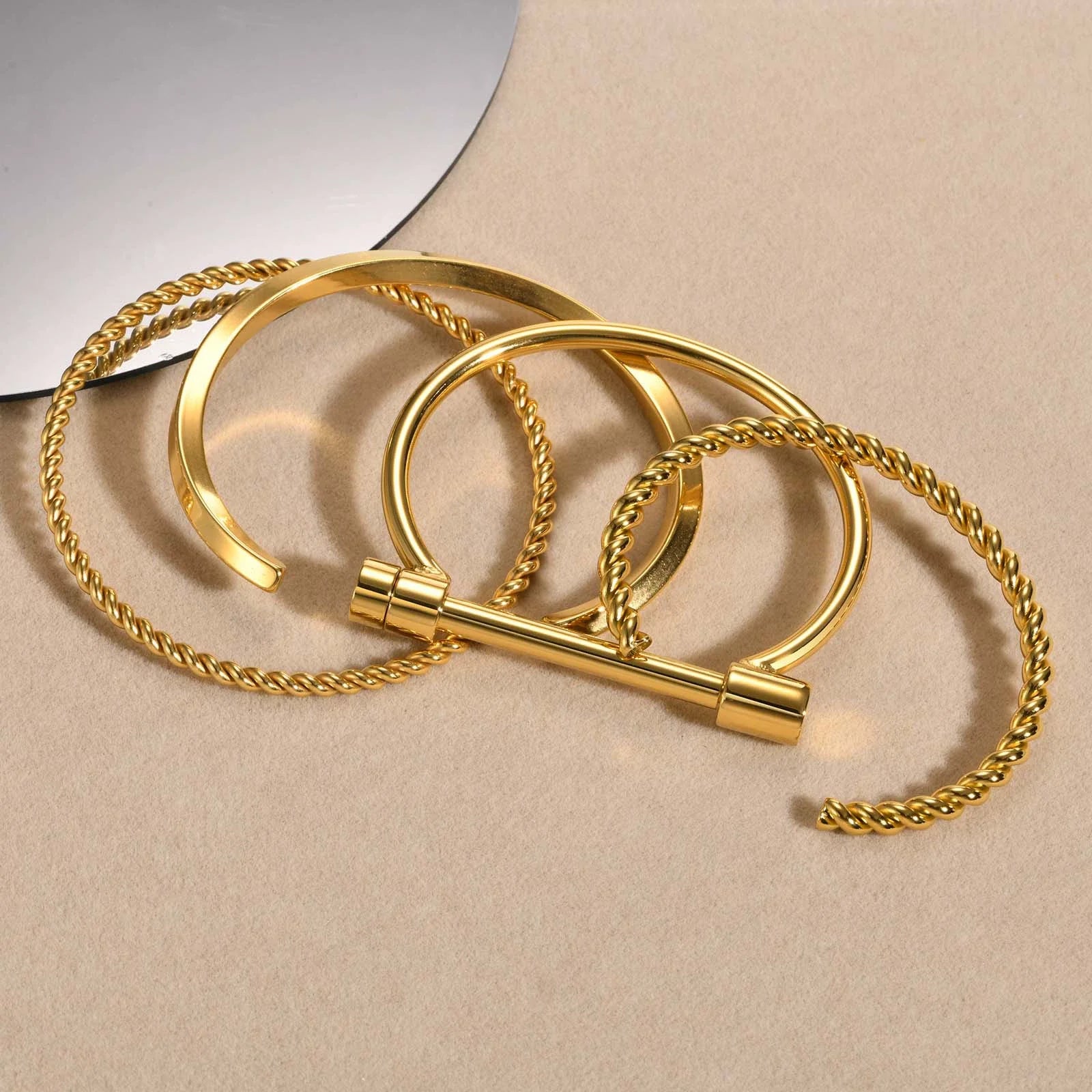 Hot 2025 18K Gold Plated Stainless Steel Twisted Cuff Bracelet for Women's Fashion & Parties