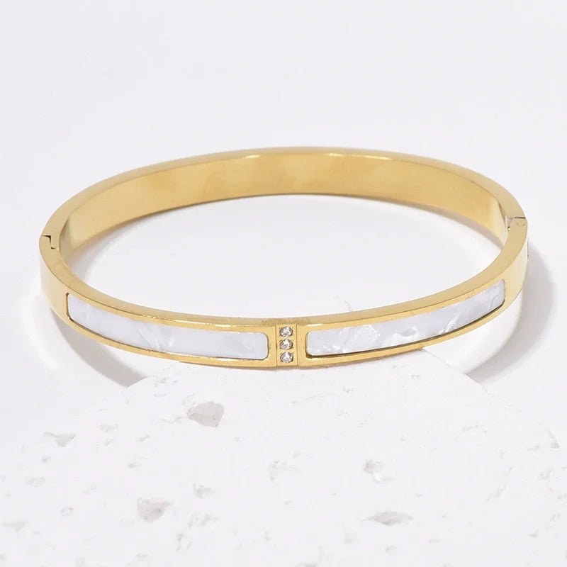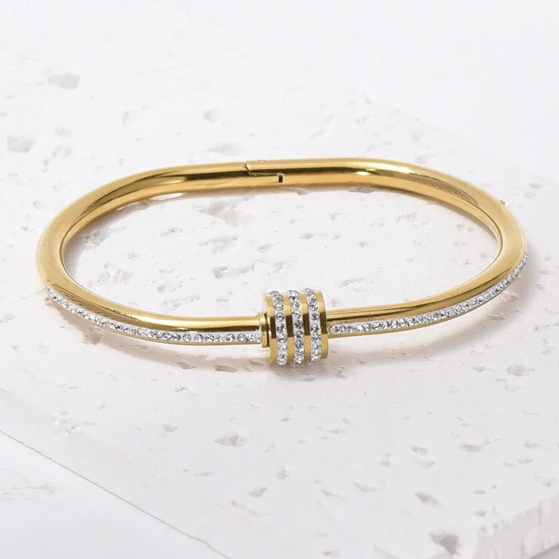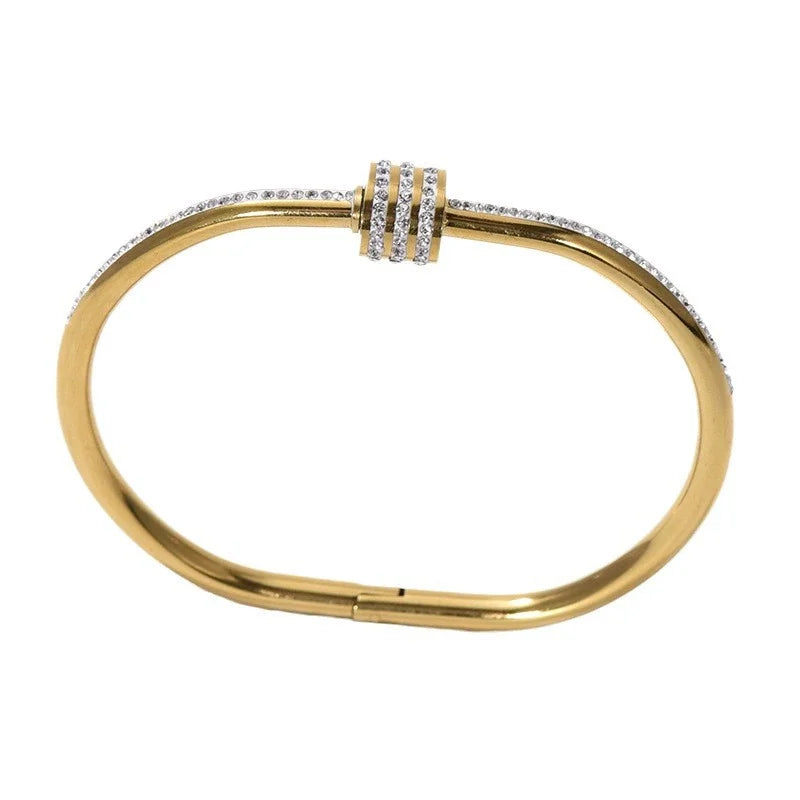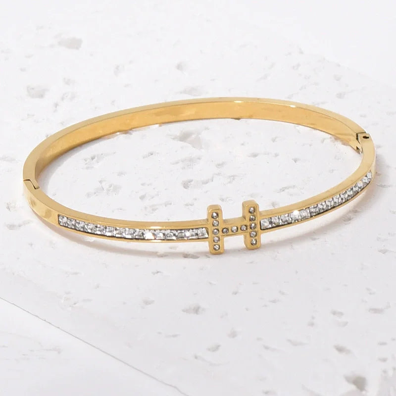 Trendy 18K Gold PVD Electroplated Stainless Steel Bracelet with Zirconia Inlay Everyday Sophistication Bangles