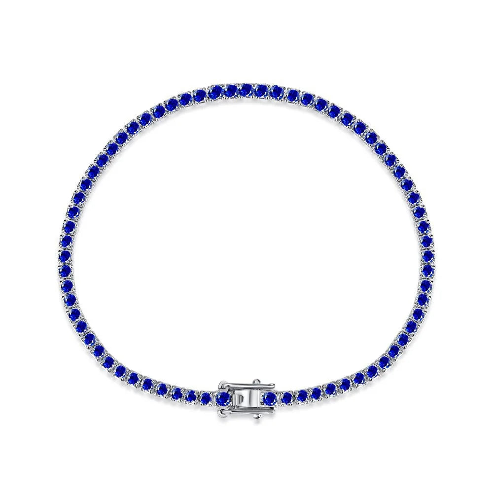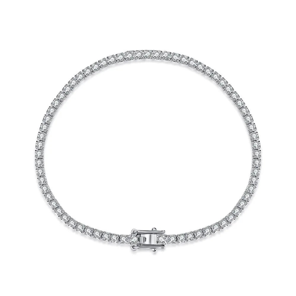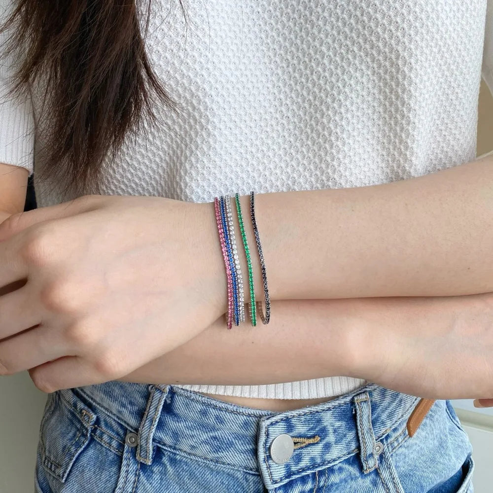925 Sterling Silver 2mm CZ Cubic Zirconia Sparkling Chain Bracelet for Women Adjustable Minimalist Jewelry for Birthday