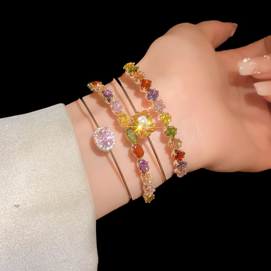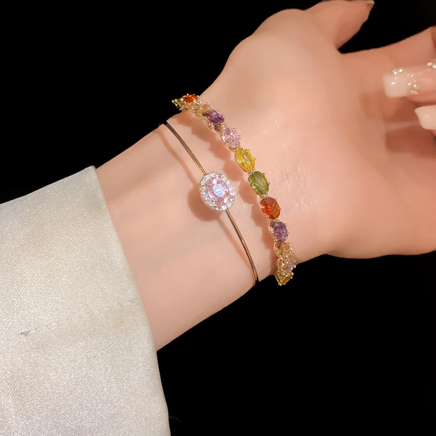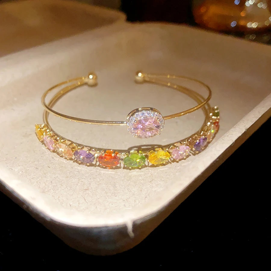 Trendy 18k Gold Plated Open Bracelet Colored Double Layer Zircon Charm Bracelet for Women Gift