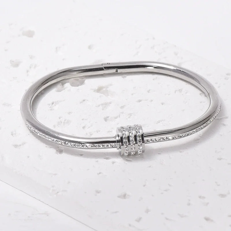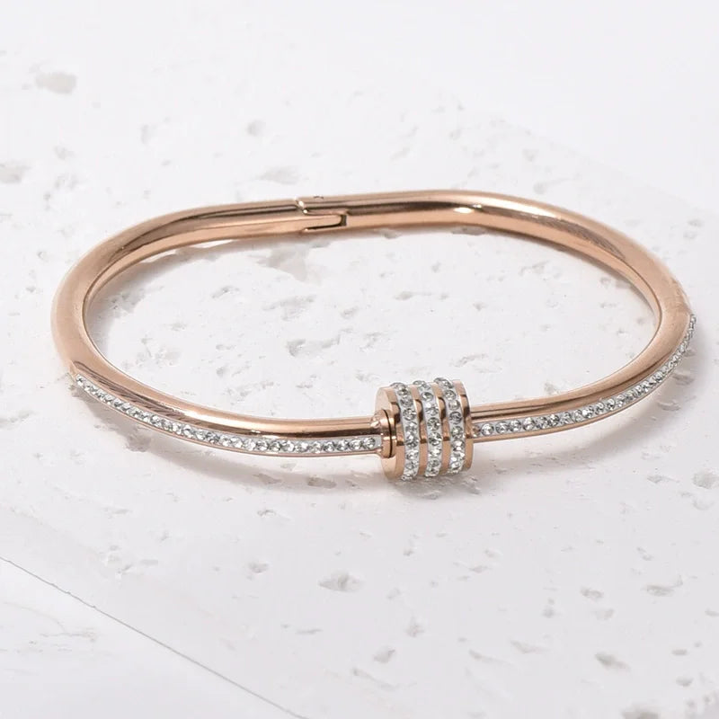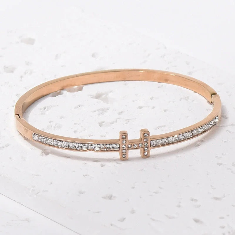 Roman Bracelet Titanium Steel Diamond Hollow Geometric Spring Fashion Jewelry for Girls Style